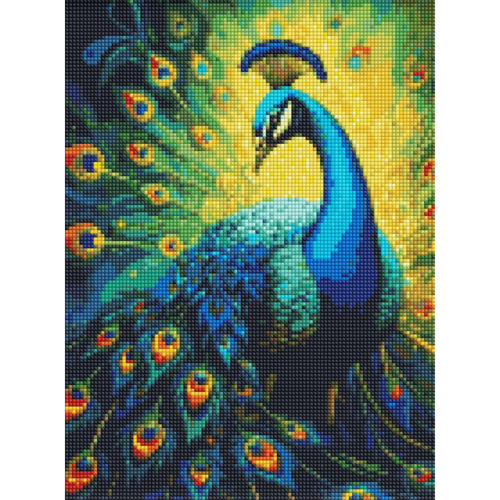 AMC20190 Ideyka Алмазна мозаїка - Витончений павич 30х40 см (круглі, з стразами AB, без підрамника, Ідейка АМС-20190) ©art_selena_ua