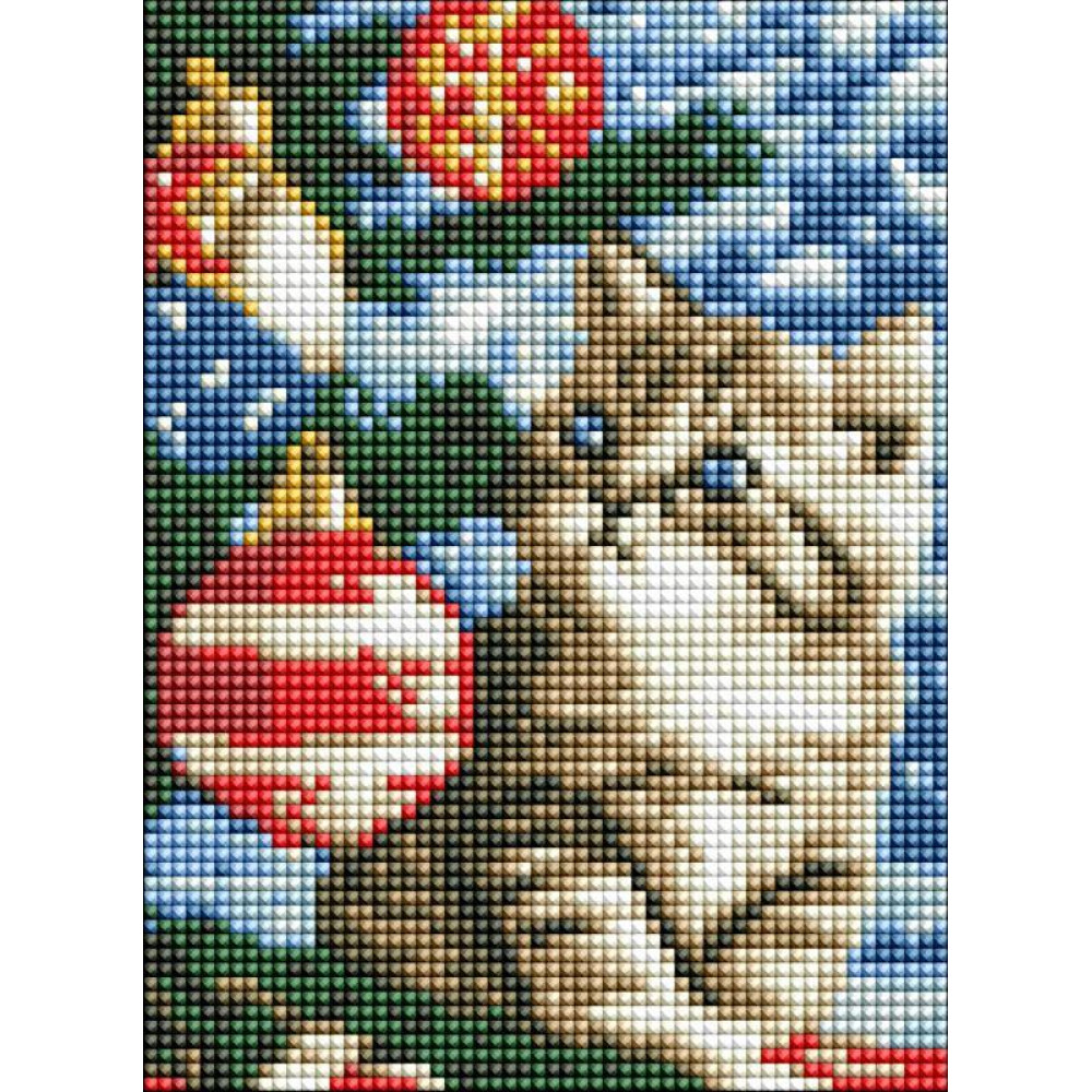AMM1007 Ideyka Алмазна мозаїка без підрамника - Кошеня під ялинкою, 15x20 см (квадратні,повна), (Ідейка AMM1007)