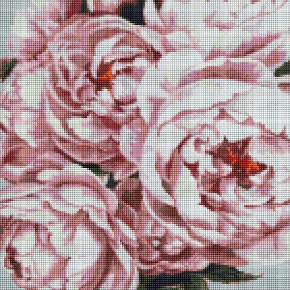 AMO7101 Ideyka Алмазна мозаїка - Витончені півонії, 40x40 см (круглі, на підрамнику, в обкладинці, AMO7101)