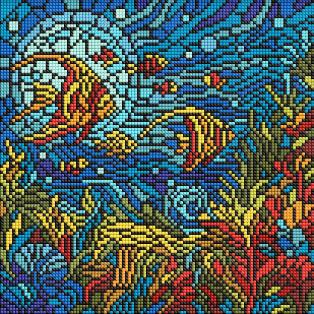 AMO8324 Ideyka Алмазна мозаїка - Вітраж. Морський світ 30х30 см (круглі, на підрамнику, АМО-8324) ©art_selena_ua