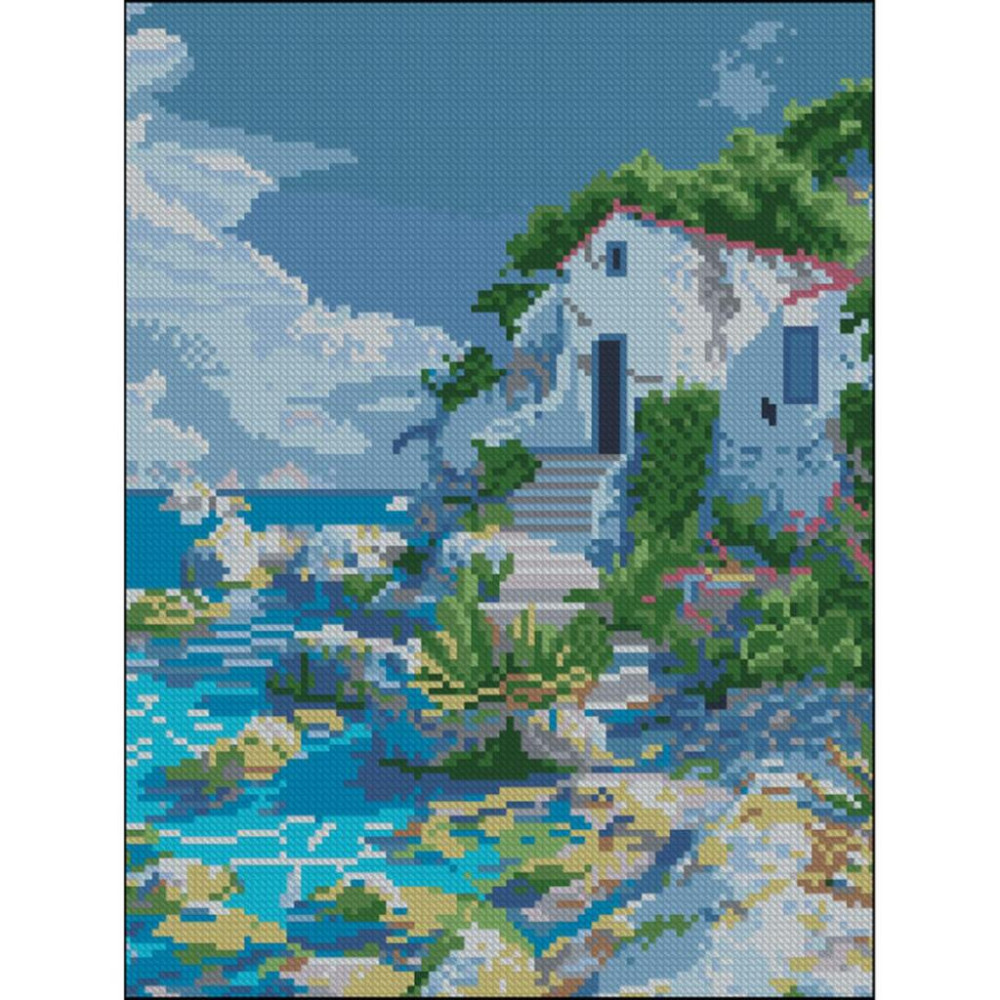 ZAV3040-57 Strateg Алмазна мозаїка - Будинок біля моря, 30x40 см (круглі, на підрамнику, Стратег)