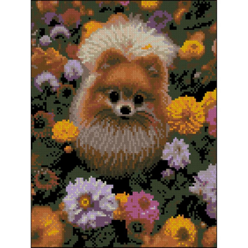 ZAV3040-61 Strateg Алмазна мозаїка - Шпіц у квітах, 30x40 см (круглі, на підрамнику, Стратег)