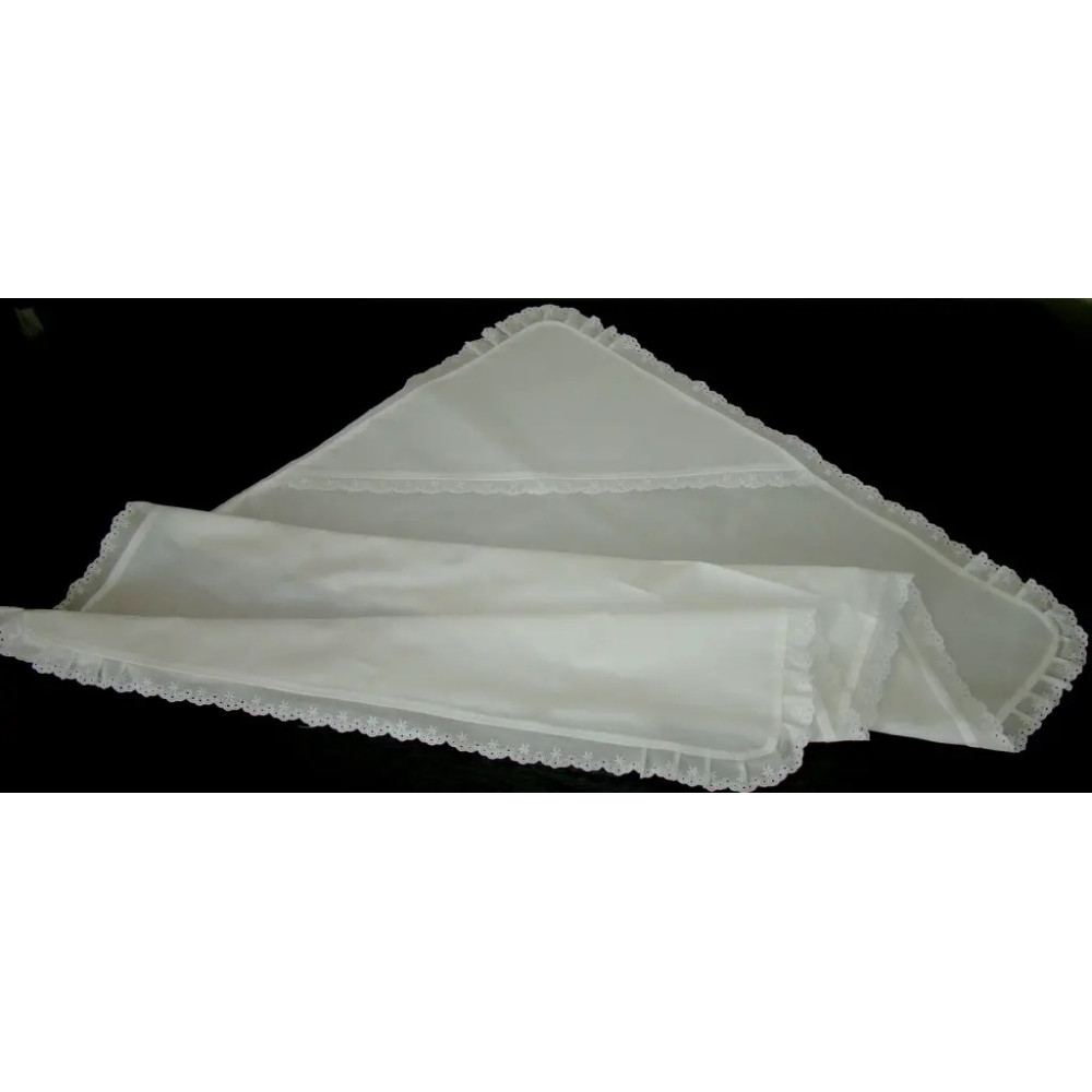 Крижма для хрещення зі вставками канви під вишивку хрестиком дозволяє створити особливий виріб для важливої події. Заготовка поєднує м’яку тканину та зручні ділянки для вишивки, а декоративне оздоблення додає виробу ніжного та святкового вигляду. Вишиті елементи надають крижмі індивідуальності та особливого символічного значення.
