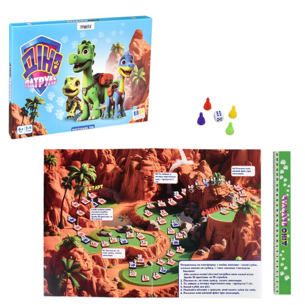 «Діно Патруль» — настільна гра-мандрівка у світ динозаврів. Разом із відважним патрулем гравці долають джунглі та розломи, відкриваючи пригоди.