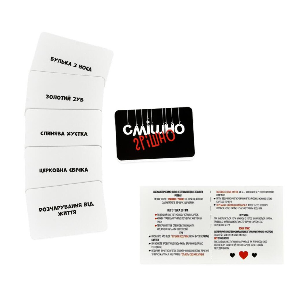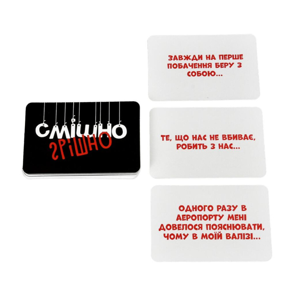«Смішно-грішно» — вибухова настільна гра для вечірок. Добирай найдивніші кінцівки до фраз і сміши друзів.