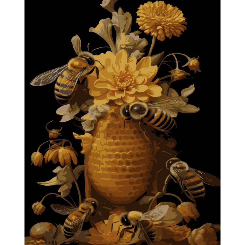 AH1194-16 Strateg Картина за номерами - Бджоли та квіти 40x50 см (на чорному фоні, Стратег)