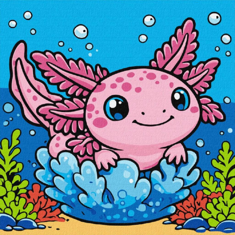 KHO1348 Ideyka Картина за номерами - Радісний аксолотль 25x25 см, (на підрамнику, Ідейка KHO1348) ©art_selena_ua