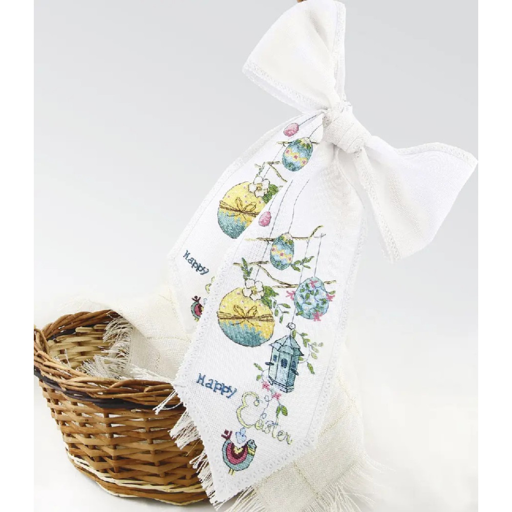 Заготовка для вишивки рахунковим хрестиком призначена для створення святкового банта на великодній кошик. Основа підходить для ручної вишивки та дозволяє власноруч оформити декоративний текстильний аксесуар до Великодня. Готовий виріб стане гарним доповненням святкового кошика та додасть особливого настрою великодньому оформленню.