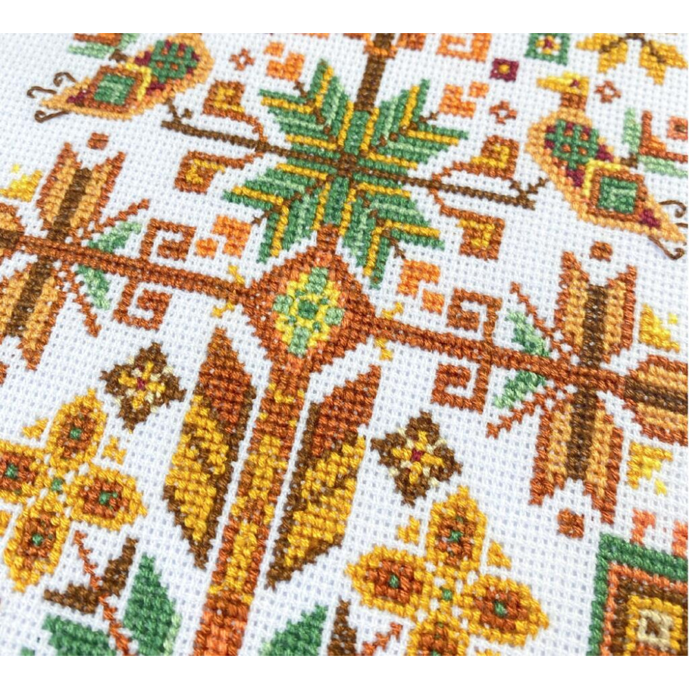 Нитки в наборі укомплектовані із запасом для комфортної роботи, загальна довжина ниток — 64 м. Набір вигадано та вироблено в Україні. Усі матеріали підібрані так, щоб ви отримали охайний результат і приємний процес вишивки.