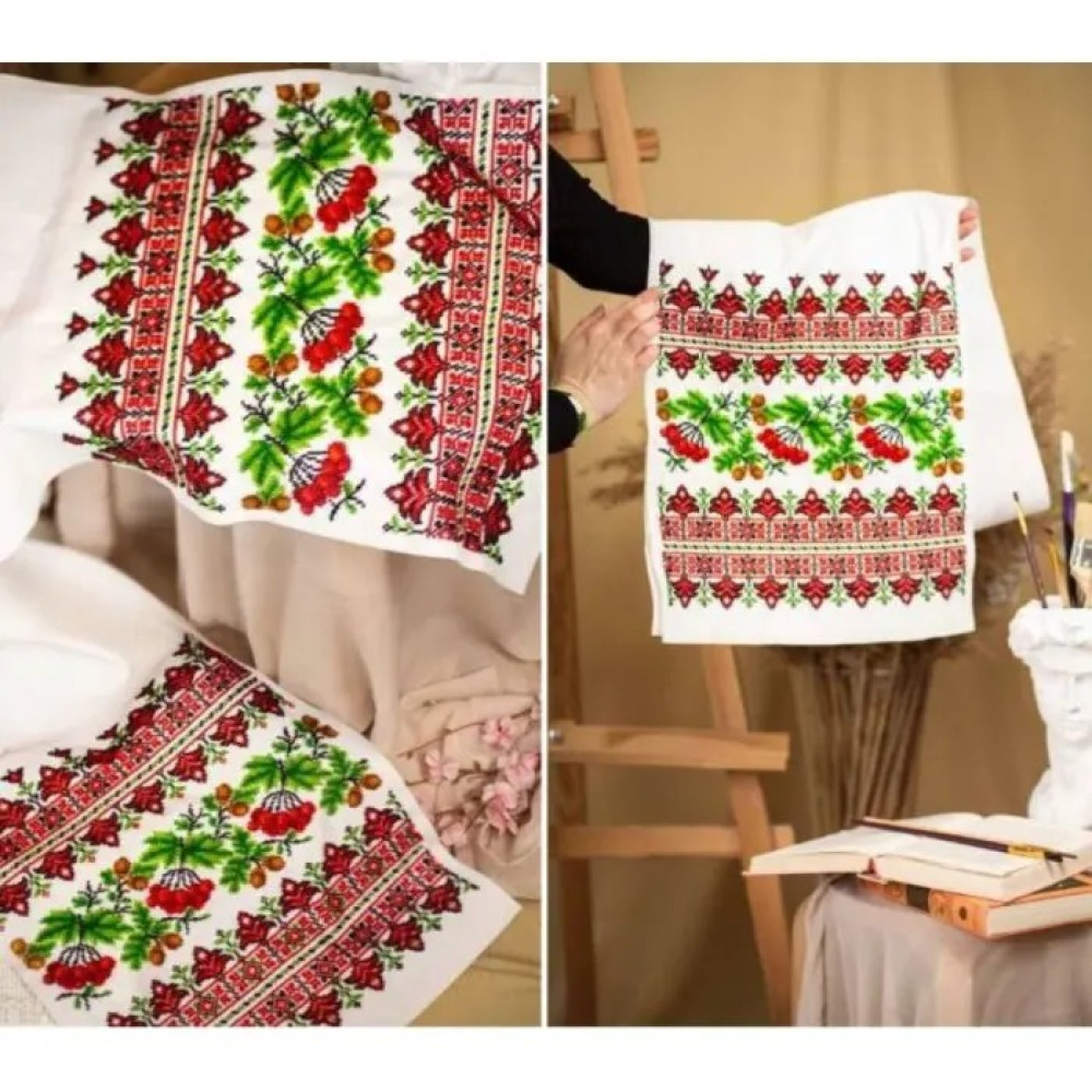 Завдяки великому розміру 35x175 см готовий виріб виглядає вражаюче та стане справжньою окрасою дому. Основа рушника зроблена з габардину, дубльований з нанесеною кольоровою схемою для вишивки бісером.