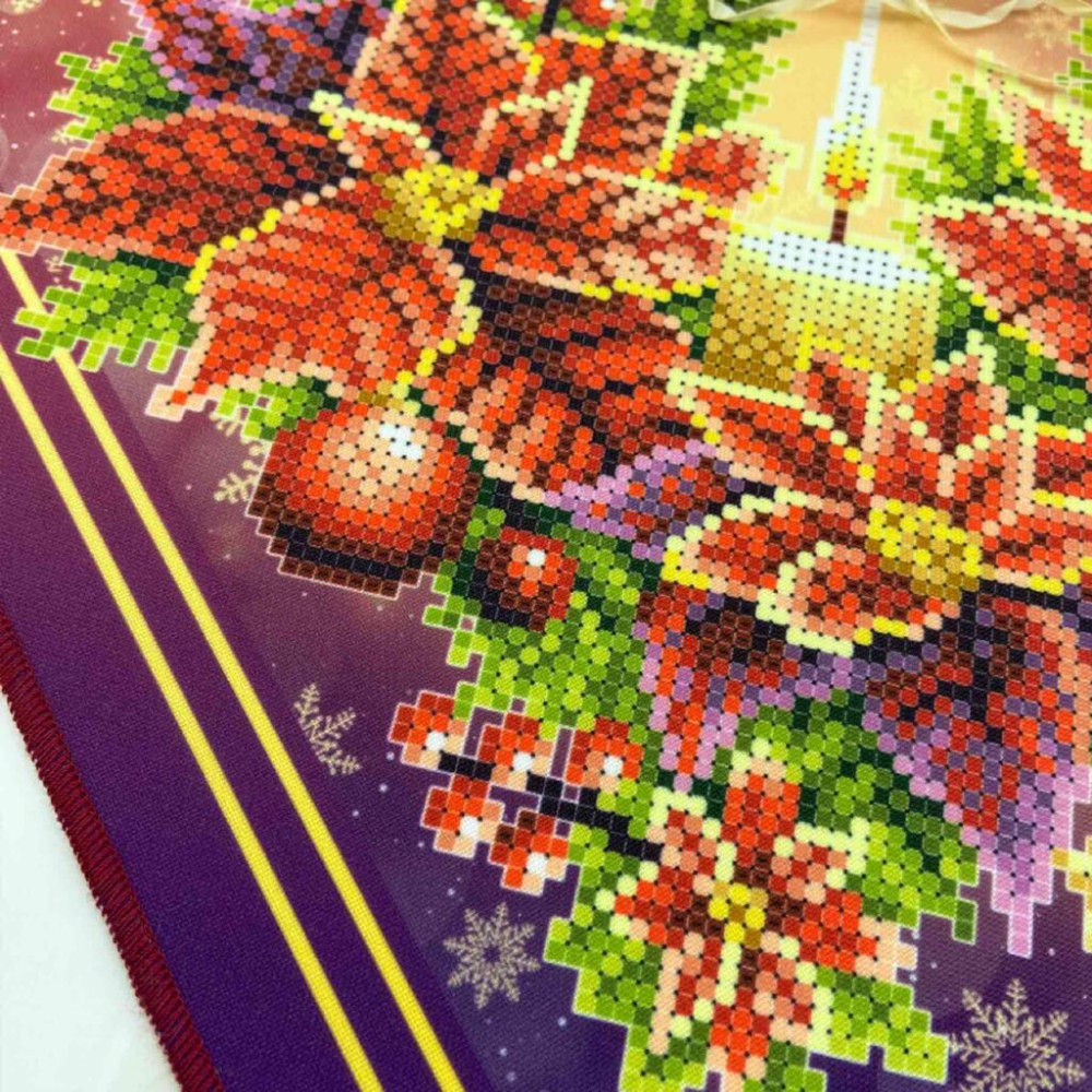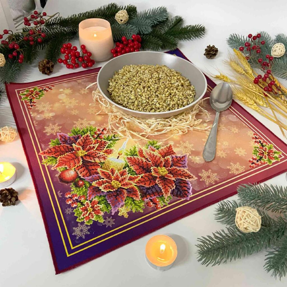 Серветка для вишивки бісером має схему-малюнок надруковану на якісному габардині, якій проклеєно флізеліном. Схема чітка з насиченими кольорами та високою якістю друку. Після прання схема-малюнок для вишивки залишається на тканині. Краї серветки фігурно обрізані.