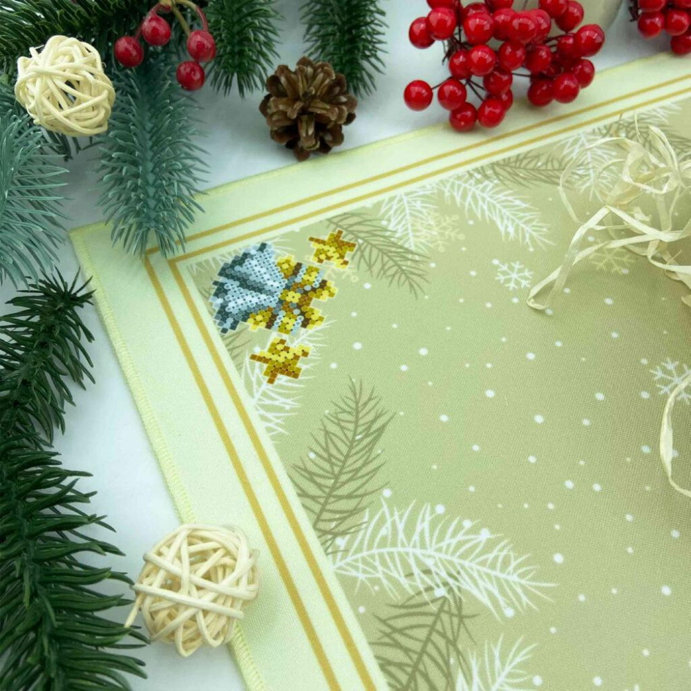 Серветка для вишивки бісером має схему-малюнок надруковану на якісному габардині, якій проклеєно флізеліном. Схема чітка з насиченими кольорами та високою якістю друку. Після прання схема-малюнок для вишивки залишається на тканині. Краї серветки фігурно обрізані.