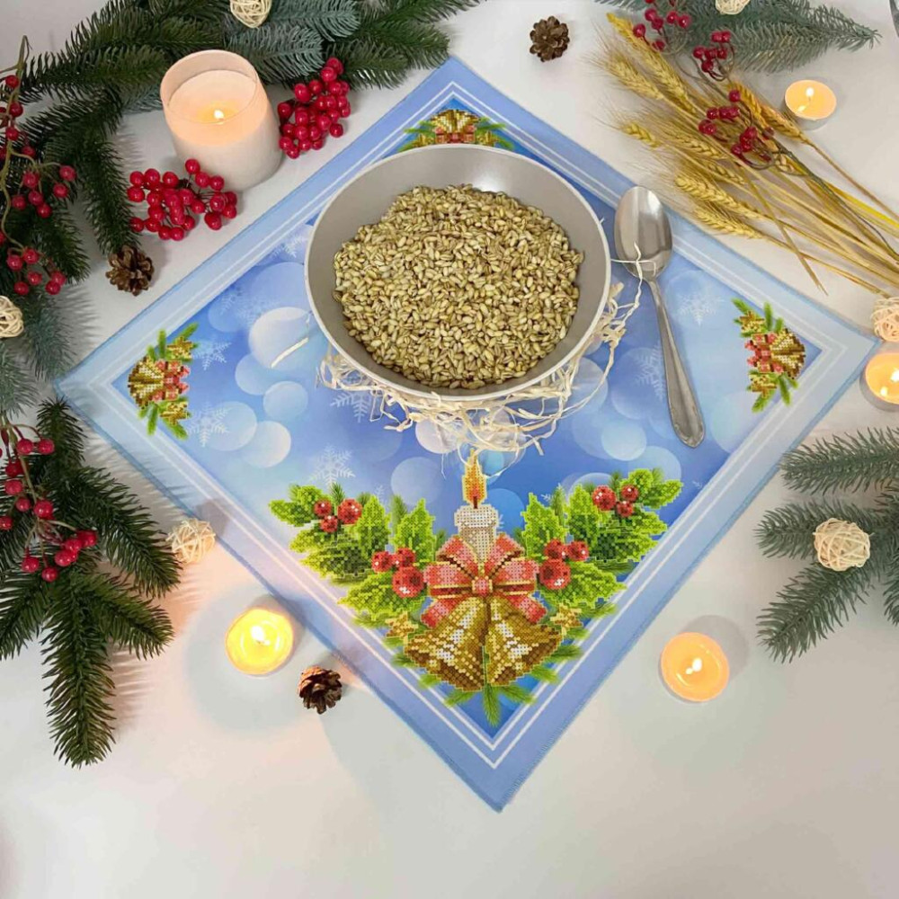 Набір для вишивки бісером серветки, виріб має чітку схему з насиченими кольорами та високою якістю друку на якісному габардині, якій проклеєно флізеліном. Після прання схема для вишивки залишається на тканині. Зрізи серветки фігурно обрізані.
