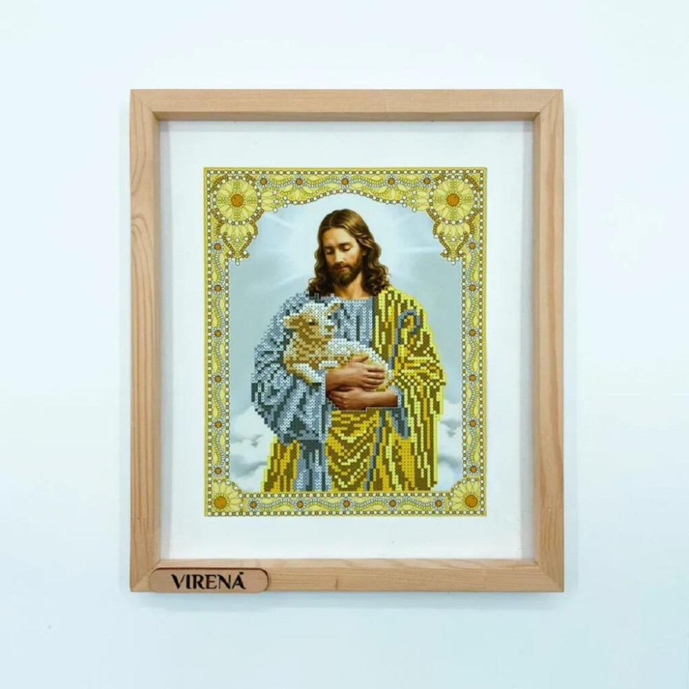 А4Р 680 Virena Заготовка для вишивки бісером - Ікона Ісус з ягням в золоті, 19x23,5 см (схема на габардині)