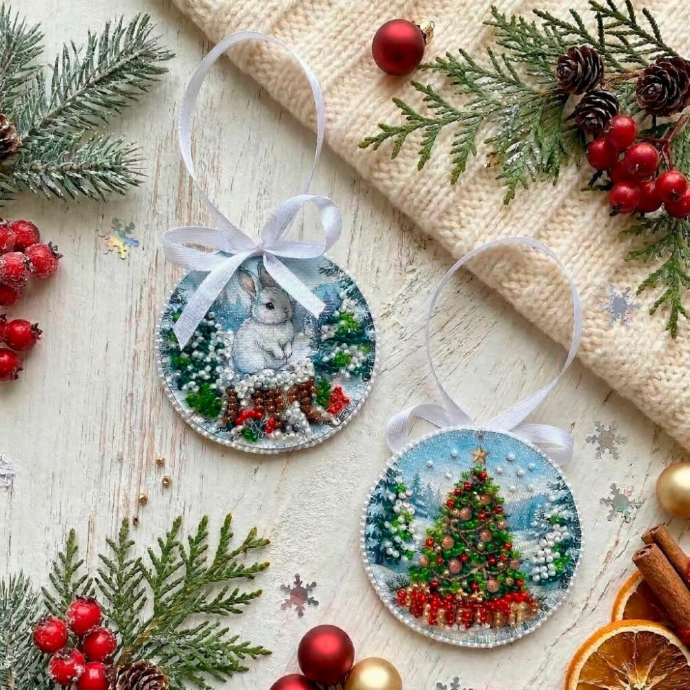 Компактний набір для вишивки бісером дозволяє створити невелику декоративну роботу з новорічним сюжетом. Завдяки невеликому розміру процес вишивки є зручним і захопливим, а готовий виріб чудово підійде для святкового декору або подарунка ручної роботи.
