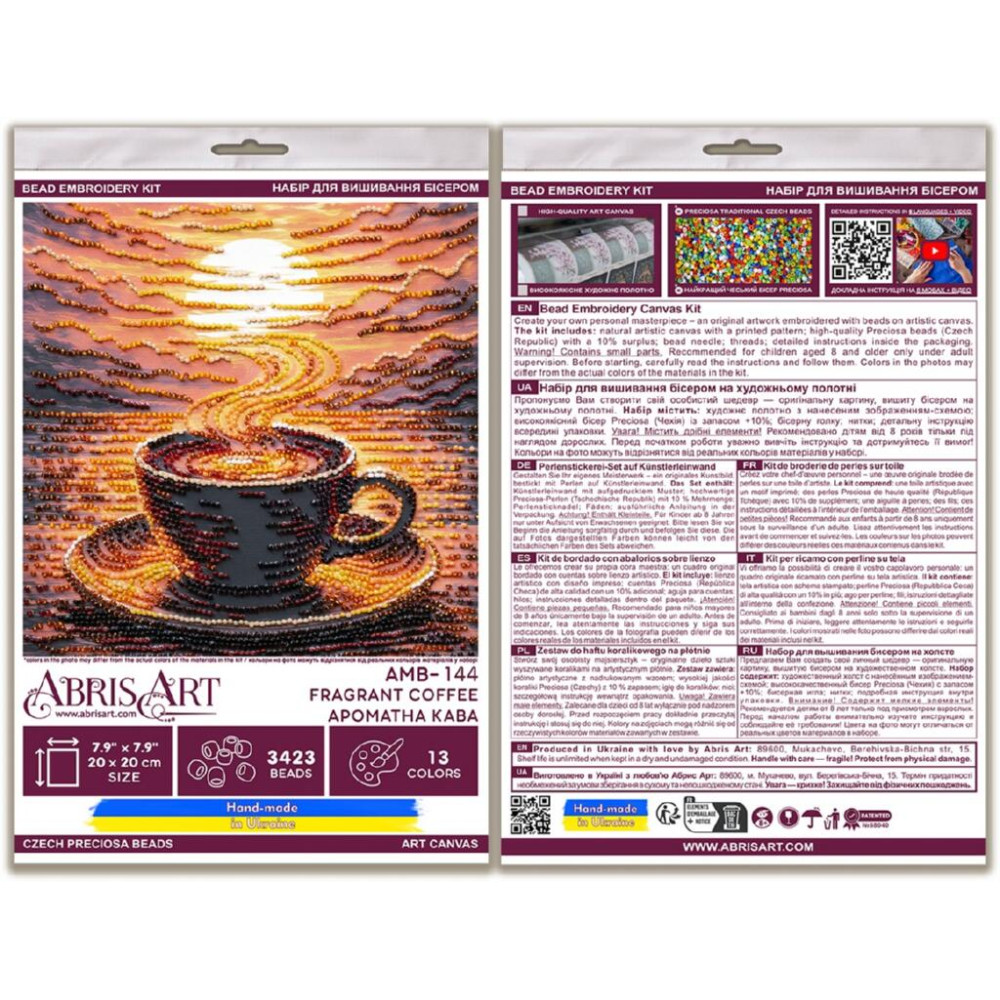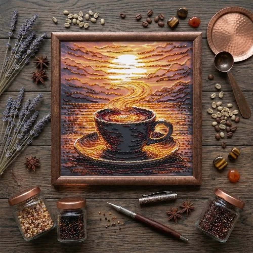 AMB-144 Абрис Арт Набір для вишивки бісером - Ароматна кава 20x20 см (художній холст)