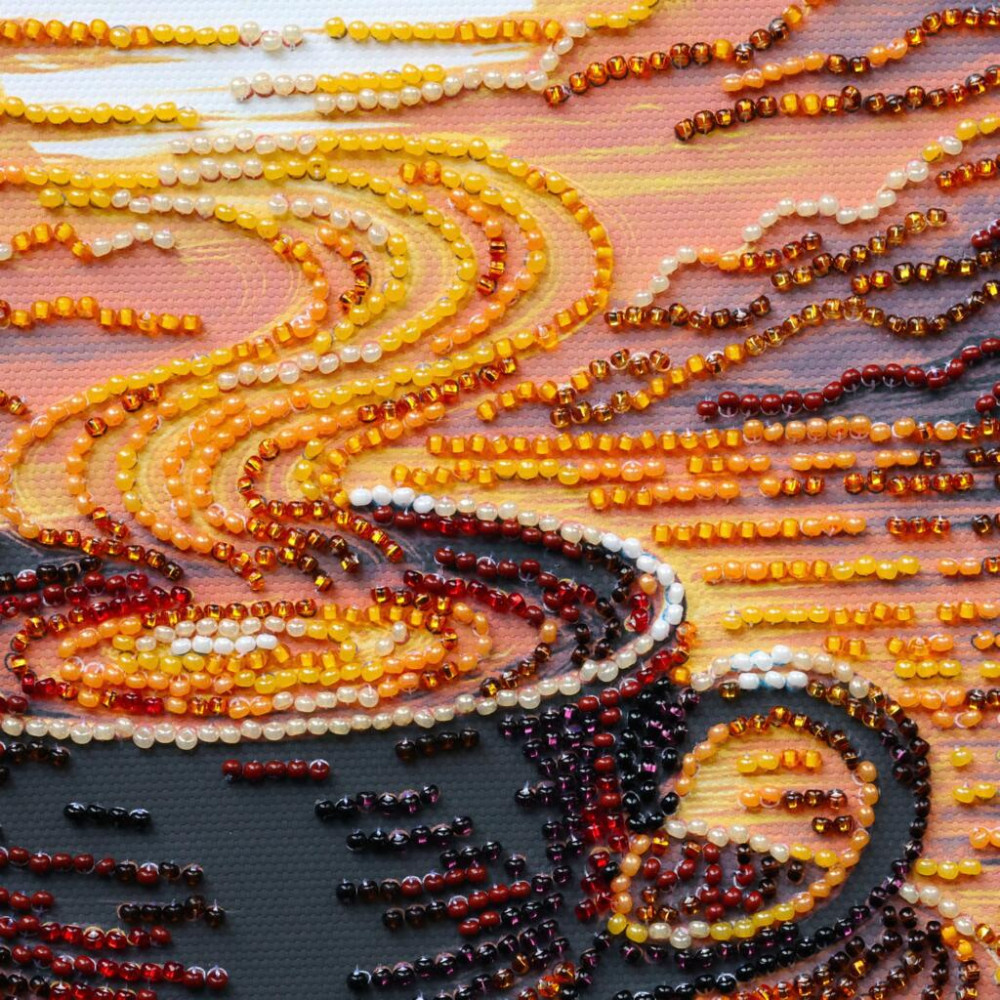 Набір для вишивки бісером дозволяє створити декоративну картину власноруч. Схема нанесена безпосередньо на основу, що полегшує процес роботи та допомагає точно розміщувати бісер відповідно до малюнка.