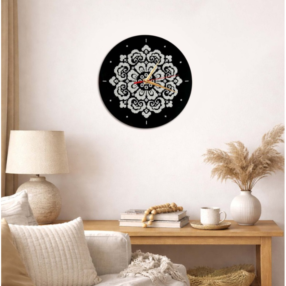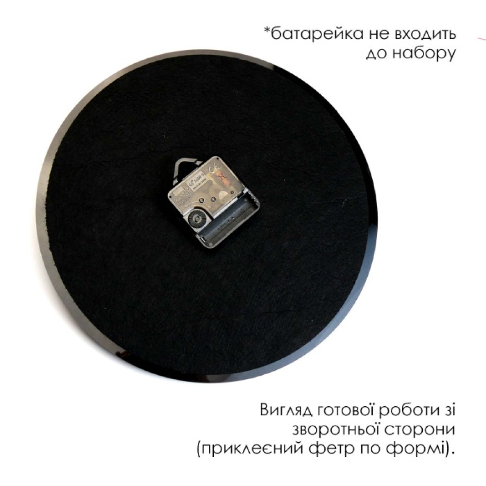 Акрилова основа відрізняється міцністю та легкістю, добре тримає форму і має акуратний вигляд у готовому виробі. Безшумний годинниковий механізм забезпечує комфортне використання, а готовий годинник стане стильним та функціональним елементом інтер’єру.