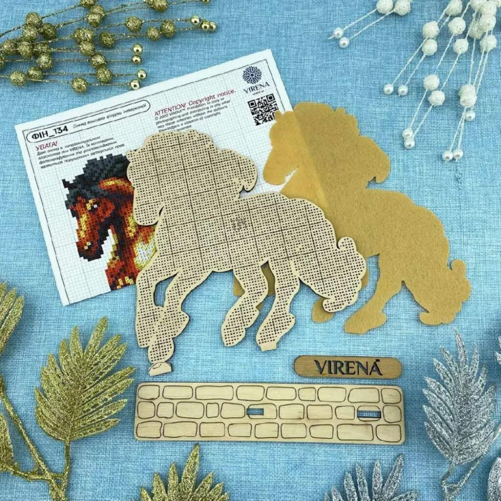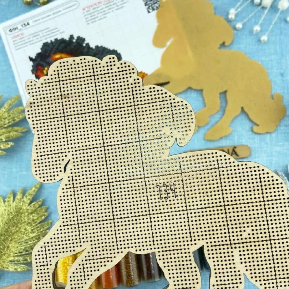 Інтер'єрна фігурка для вишивання бісером на дерев'яній основі, має перфоровану схему-малюнок. До комплекту входить фігурний фетр, яким можна задекорувати задню сторону фігурки.