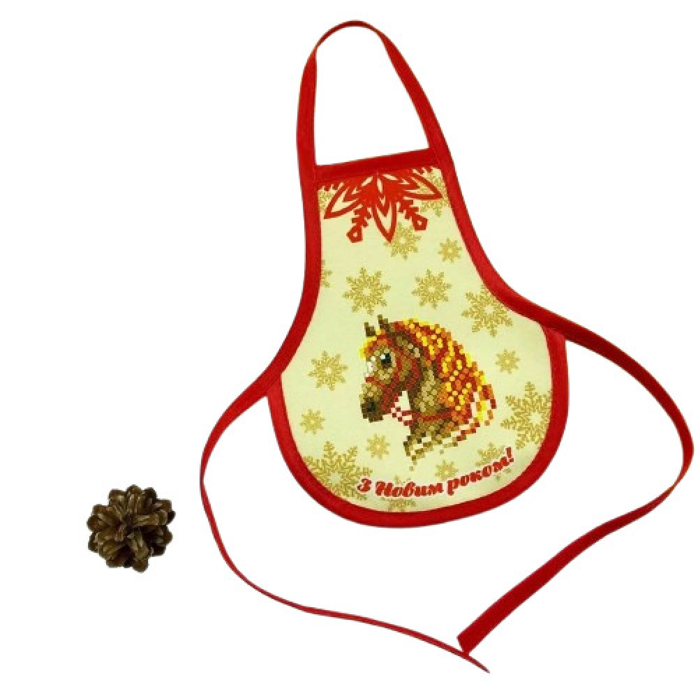 Фартух на пляшку для вишивання бісером має схему-малюнок надруковану на якісному габардині, якій проклеєно флізеліном. Схема чітка з насиченими кольорами та високою якістю друку. Після прання схема-малюнок для вишивки залишається на тканині. Краї фартуха обшиті косою бейкою, фартух повністю зшитий і не потребує додаткової роботи зі зшивання. Довжина зав'язок 74 см кожна.