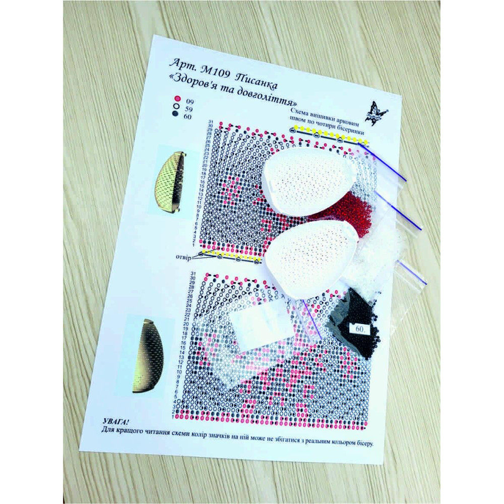 М105 Butterfly Іграшка Писанка здоров'я та довголіття — набір для вишивки бісером на пластиковій основі у формі великоднього яйця. Основа має перфорацію, що забезпечує зручний процес вишивки та дозволяє акуратно формувати об’ємний виріб. Такий формат ідеально підходить для створення святкового декору власноруч.