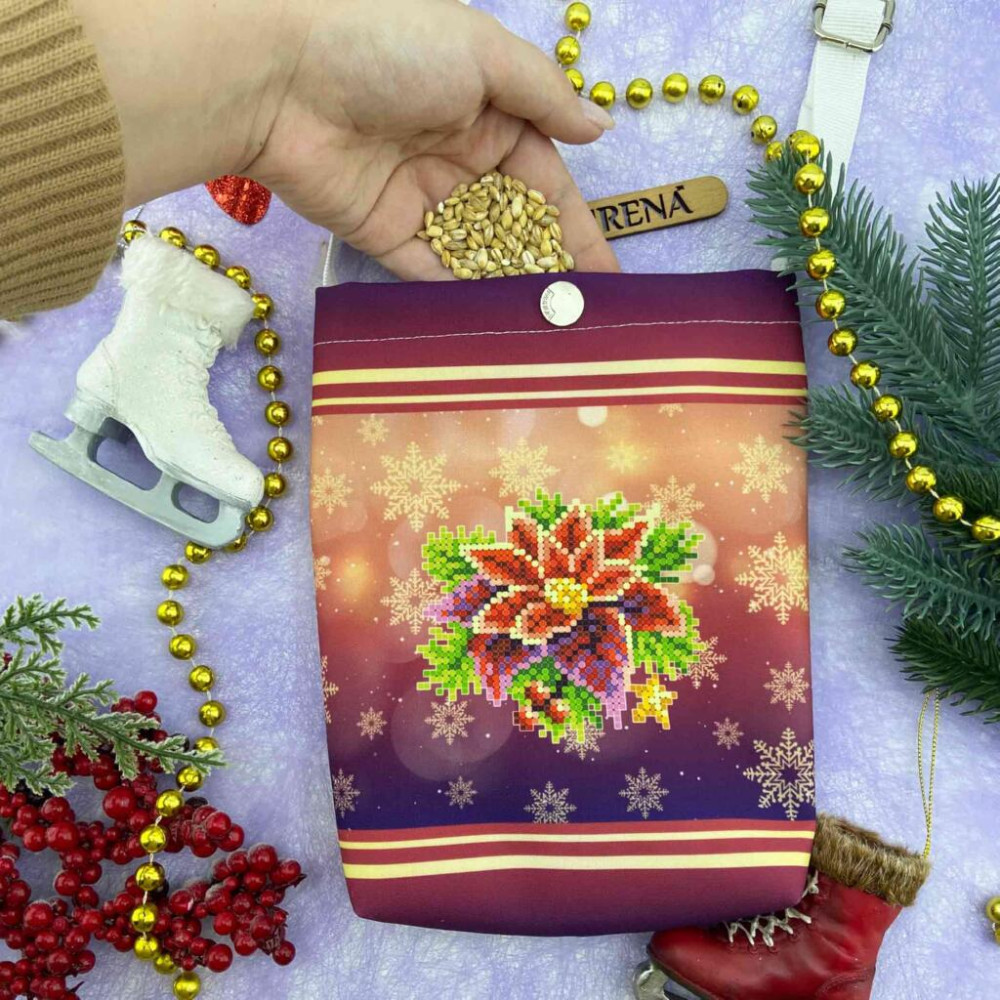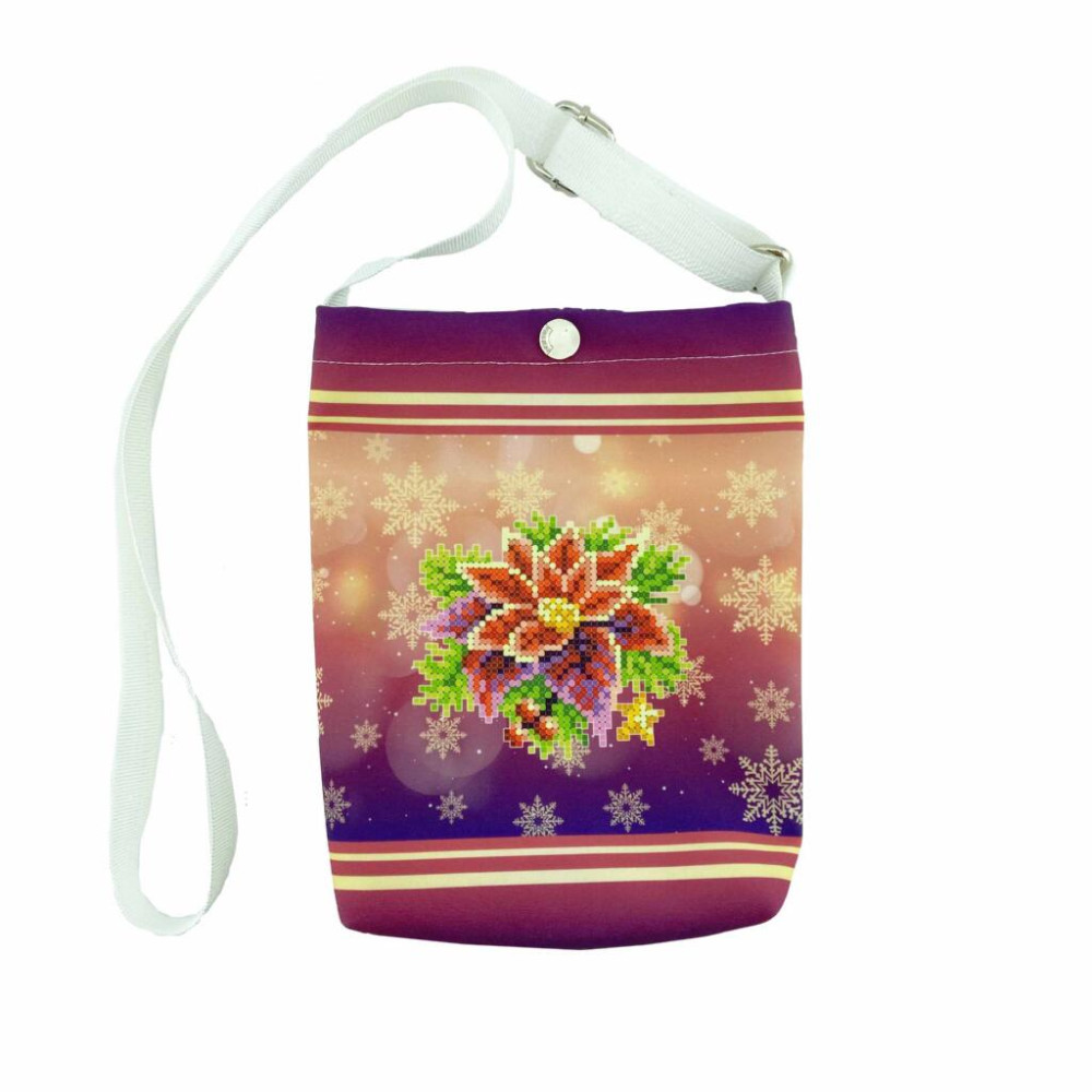 Мішечок для посівання з ременем під вишивку бісером, має чітку схему з насиченими кольорами та високою якістю друку на габардині, який проклеєно флізеліном.
