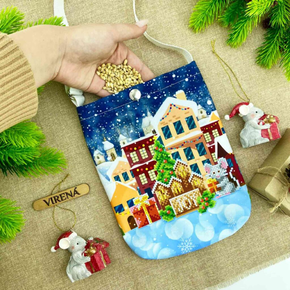 Мішечок_214 Virena Заготовка для вишивки бісером - Мішечок для посівання мишка з подарунками 16х22,5х2 см (схема на габардині)