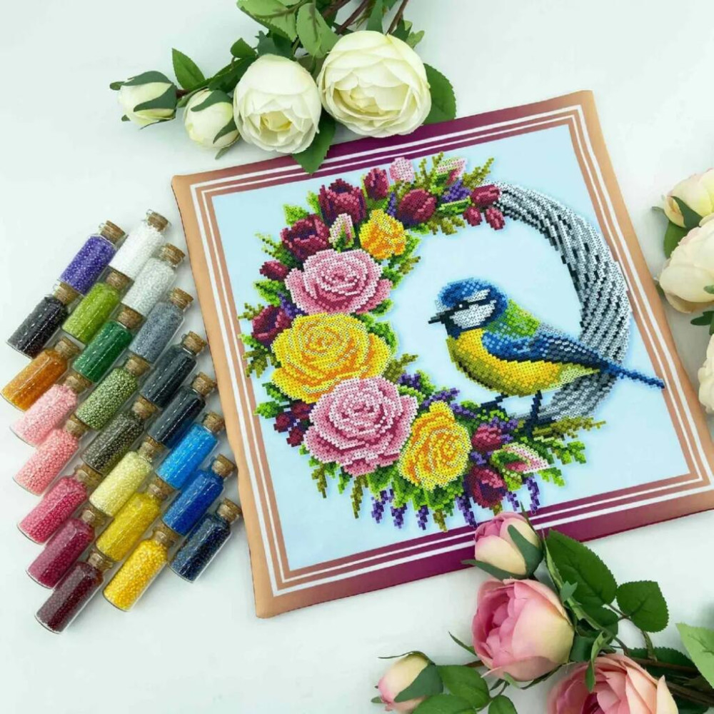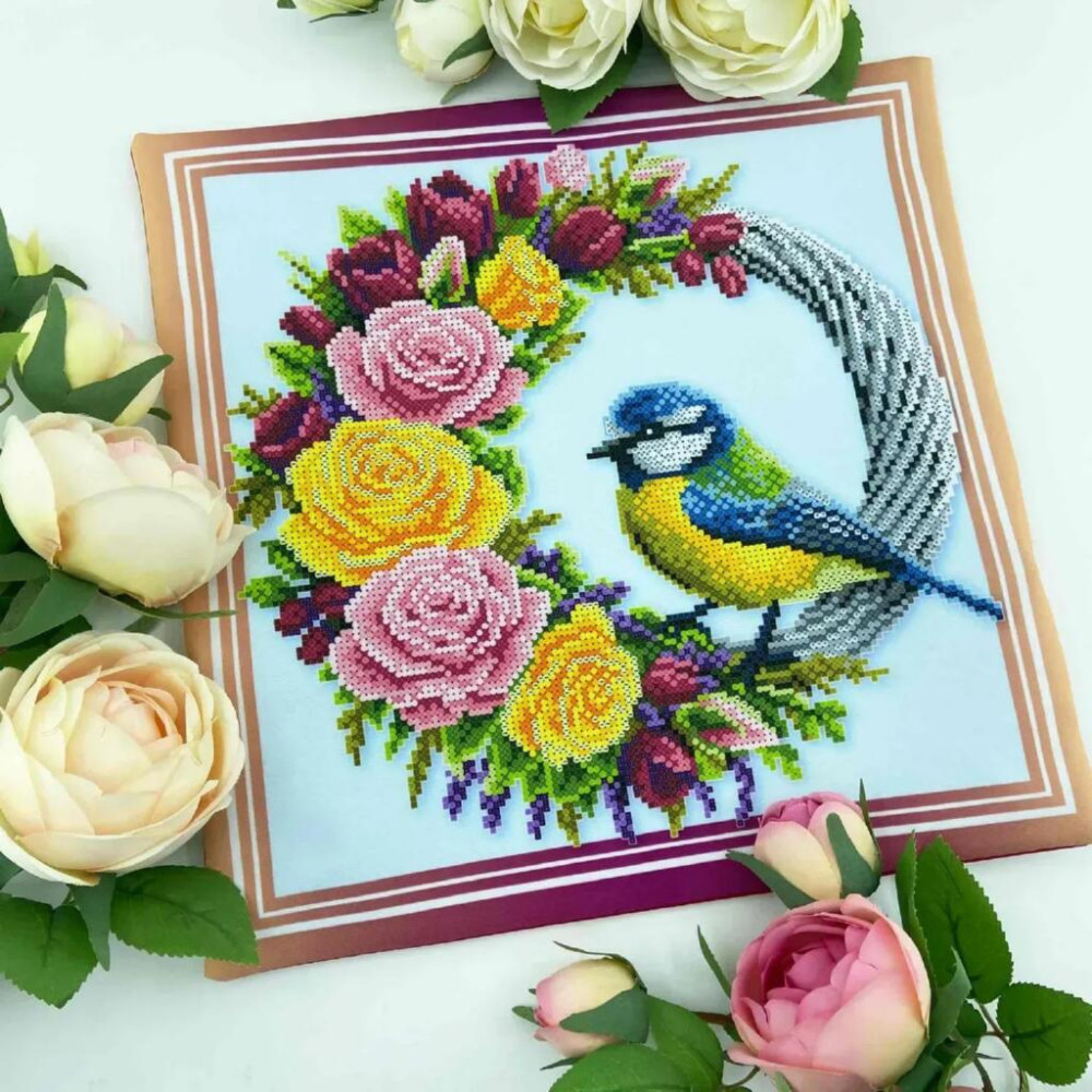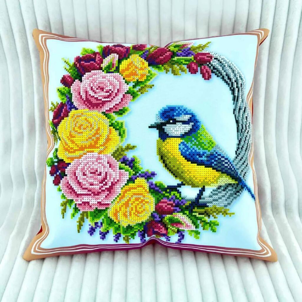 НД_248 Virena Заготовка для вишивки бісером - Наволочка декоративна Віночок з пташкою 31x31 см, габардин