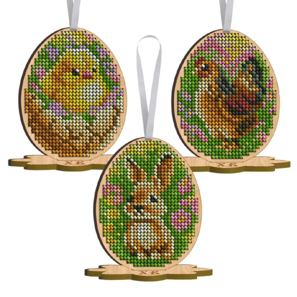 НІП_401 Virena Дерев'яна заготовка для вишивки бісером - Великодні міні-іграшки 6,6смx8,6 см (3 шт)