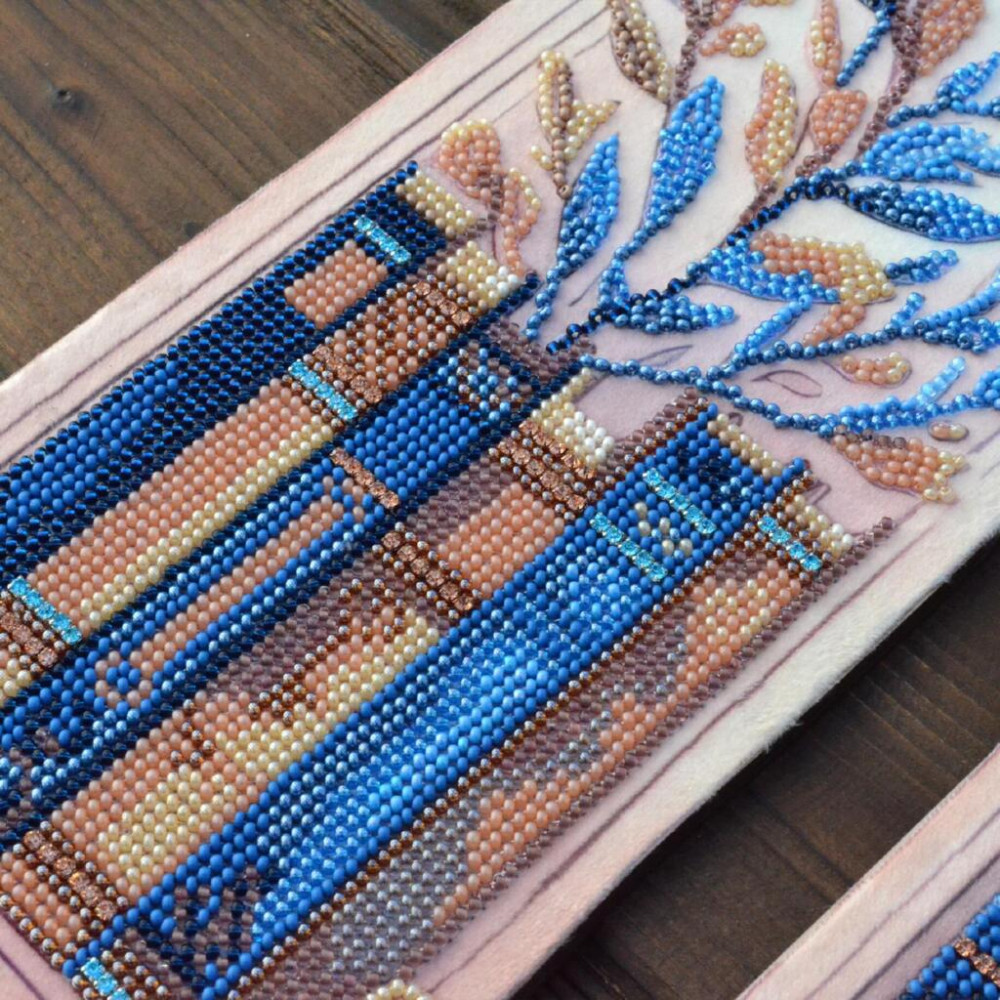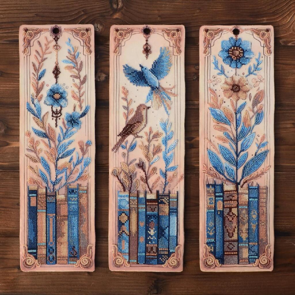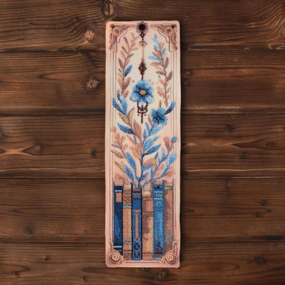 На полотні передбачене поле навколо зображення, що дозволяє оформити роботу як у рамку, так і у вигляді декоративного банера. Готовий виріб стане стильним аксесуаром для книг або елементом декору інтер’єру.