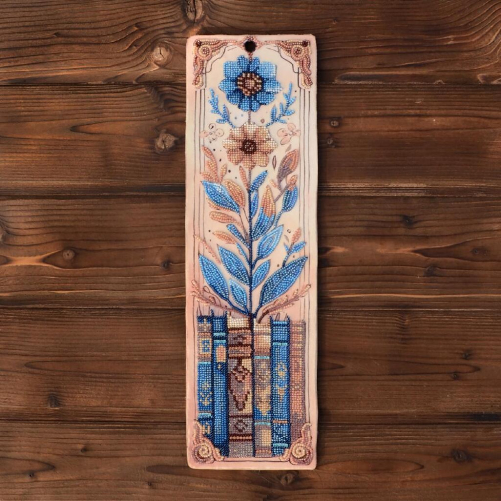 На полотні передбачене поле навколо зображення, що дозволяє оформити роботу як у рамку, так і у вигляді декоративного банера. Готовий виріб стане стильним аксесуаром для книг або елементом декору інтер’єру.