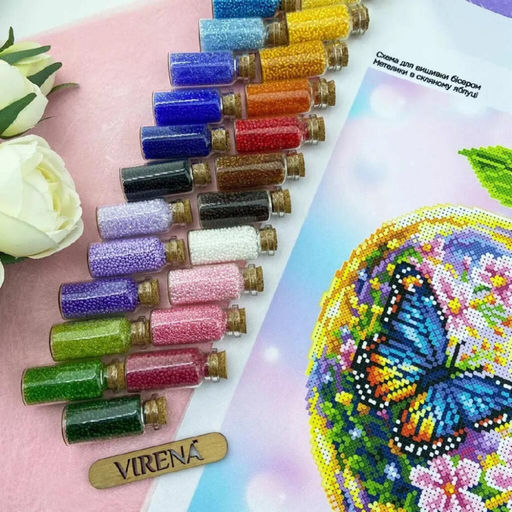 КВ_3020 Virena Заготовка для вишивки бісером - Метелики в скляному яблуці 29,5x29,5см (габардин)