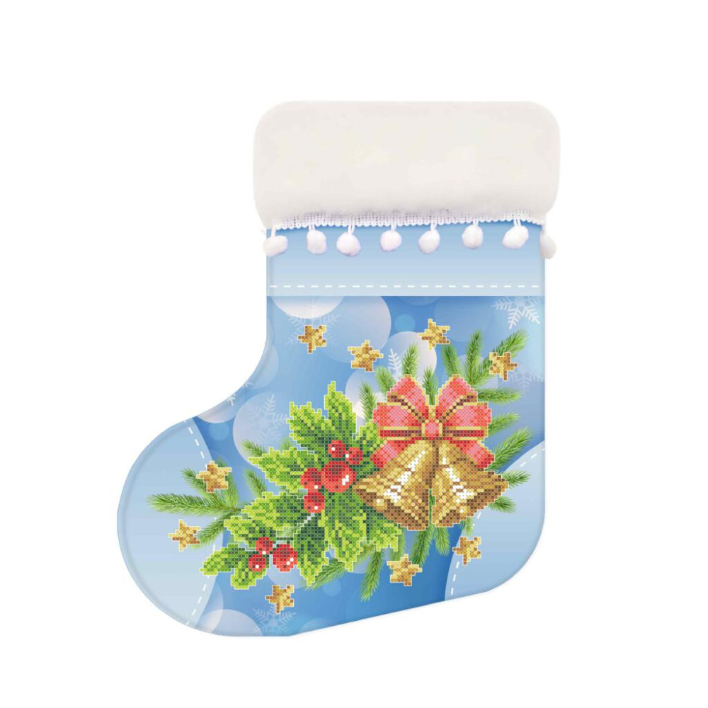 Декоративний чобіток під вишивки бісером, має чітку схему з насиченими кольорами та високою якістю друку на габардині, який проклеєно флізеліном. Після прання схема для вишивки залишається на тканині. Виріб повністю пошитий та не потребує додаткових операцій зі зшивання. Чобіток оздоблений штучним хутром з помпонами.