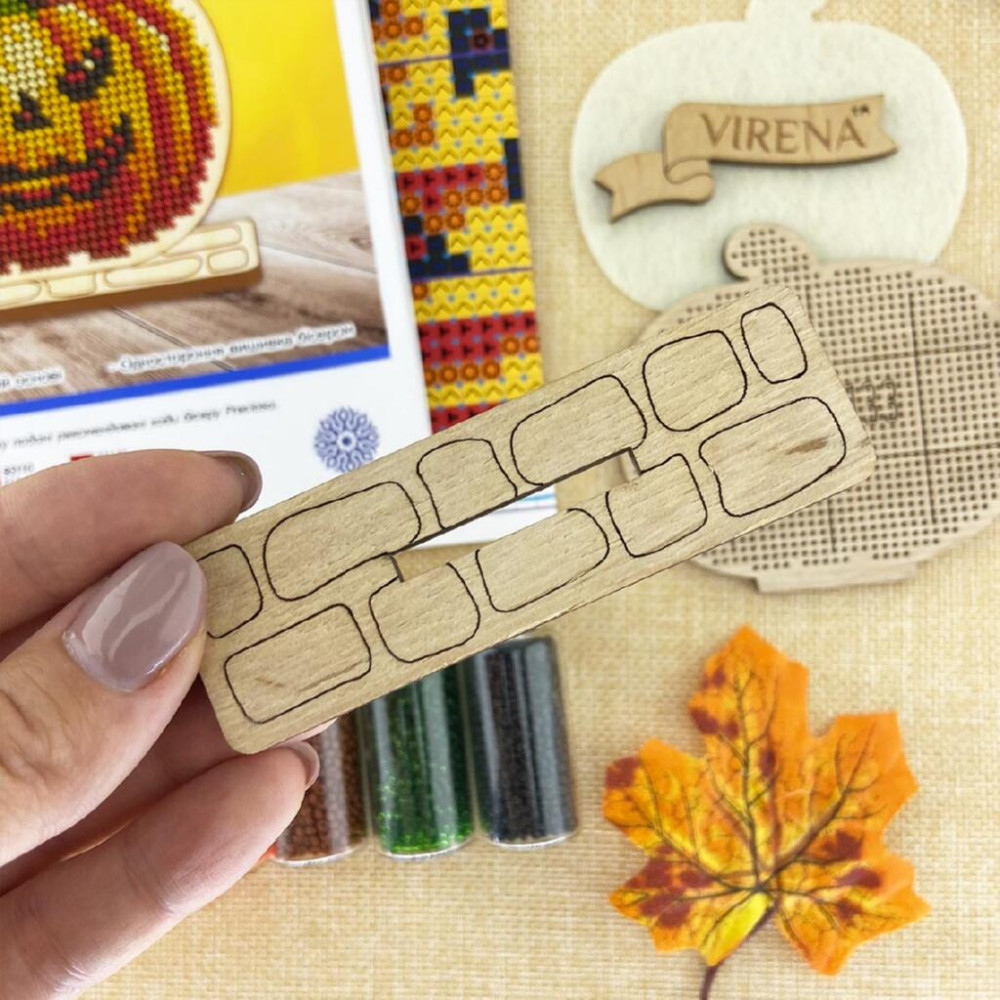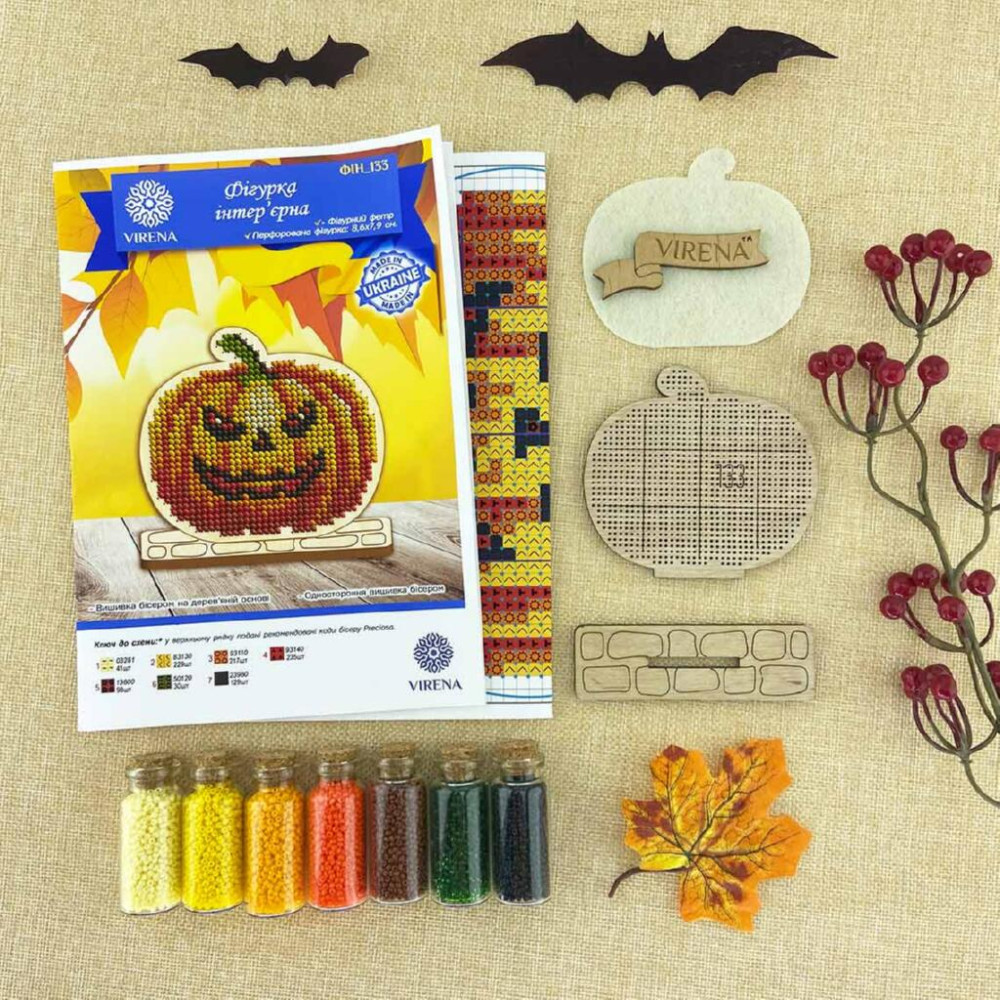 ТБ_ФІН_133 Virena Набір для вишивки бісером по дереву - Іграшка Хелловін Гарбуз 8,6х7,9 см