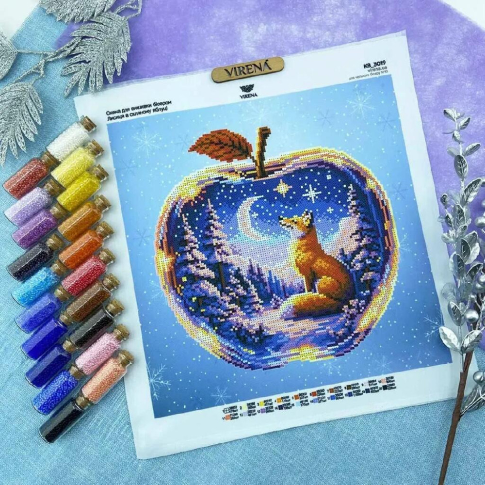 ТБ_КВ_3019 Virena Набір для вишивки бісером - Лисиця в скляному яблуці 29,5x29,5см (габардин)