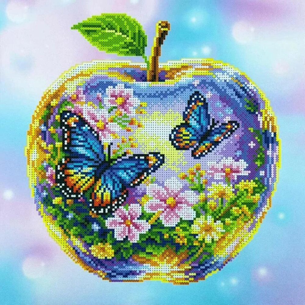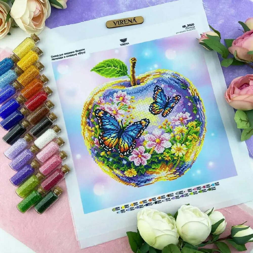 ТБ_КВ_3020 Virena Набір для вишивки бісером - Метелики в скляному яблуці 29,5x29,5см (габардин)