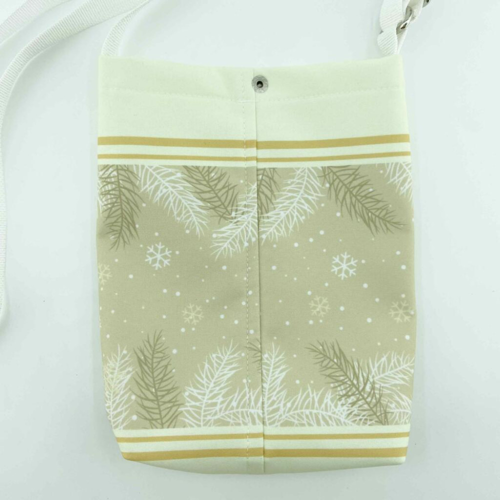 Мішечок повністю пошитий та має довгий ремінь, який дозволяє носити його на плечі. Довжину ременя можна регулювати за допомогою перетяжки. Мішечок закривається на кнопку. Виготовлений з габардину, який проклеєний флізеліном.