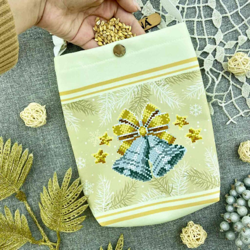Мішечок призначений для пшениці, яку дітки посівають на новий рік, Різдво або старий новий рік. Також передбачений варіант для винагороди! Якщо посівати; колядувати чи щедрувати іде кілька діток, то цікаво буде мати дві торбинки. Одну для пшениці, а другу для грошей та цукерок!