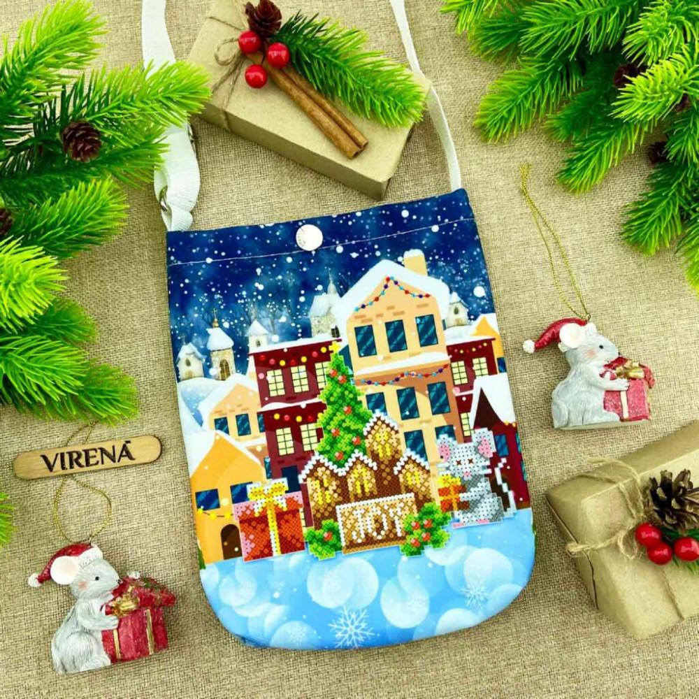 ТБ_Мішечок_214 Virena Набір для вишивки бісером - Мішечок для посівання мишка з подарунками 16х22,5х2 см (габардин)