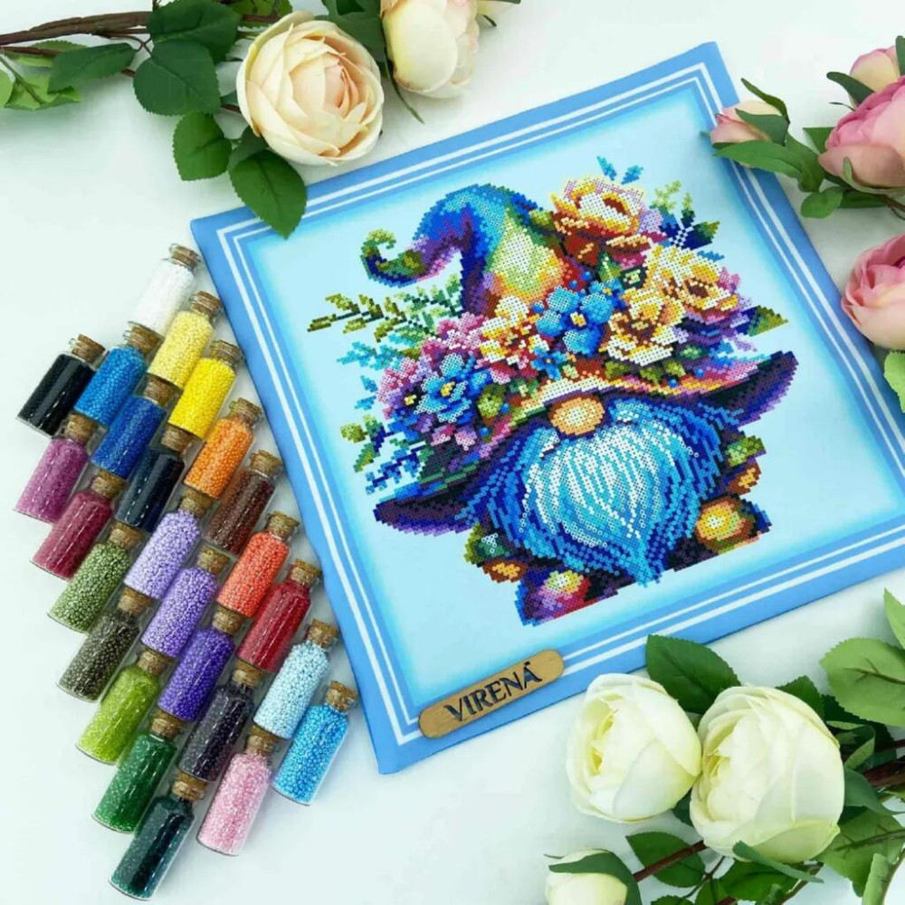 ТБ_НД_246 Virena Набір для вишивки бісером - Наволочка декоративна Гном з квітами 31x31 см (схема на габардині)