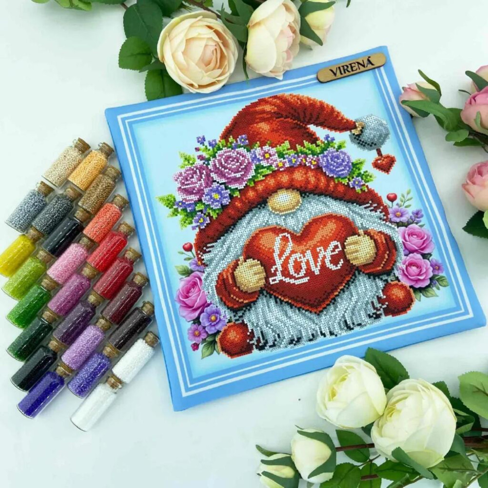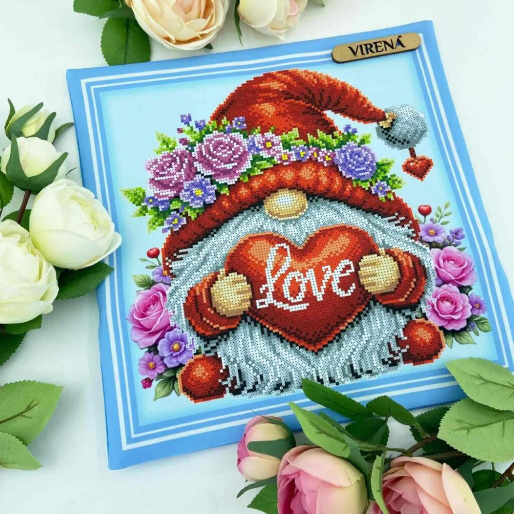 ТБ_НД_247 Virena Набір для вишивки бісером - Наволочка декоративна Гном з сердечком 31x31 см (схема на габардині)