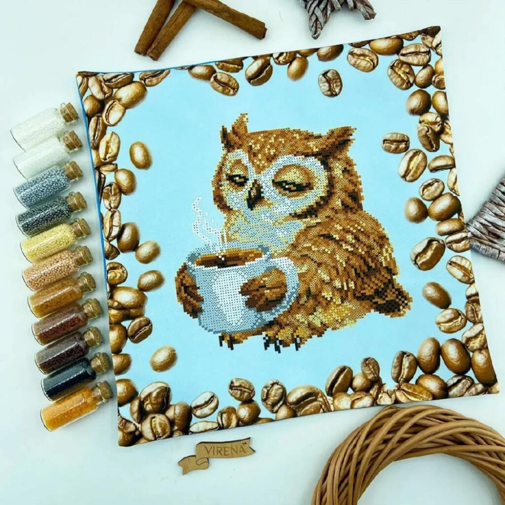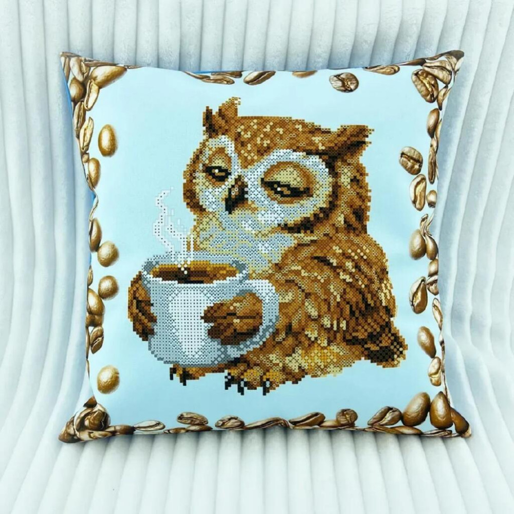 ТБ_НД_250 Virena Набір для вишивки бісером - Наволочка декоративна Сова з чашкою кави 31x31 см (схема на габардині)