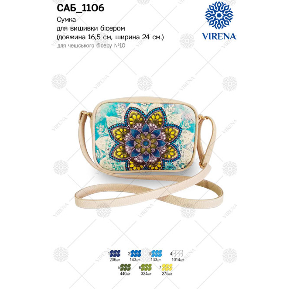 Набір для вишивки бісером сумки. Декор нанесений на цупку тканину, яка проклеєна дублерином, друк декору яскравий, чіткий, стійкий до вологи та сонячного світла. Декор вишивається легко та зручно. Сумка повністю зшита та не потребує додаткових операцій з зшивання.