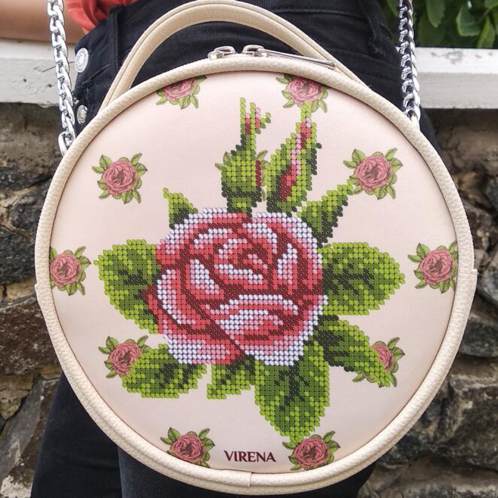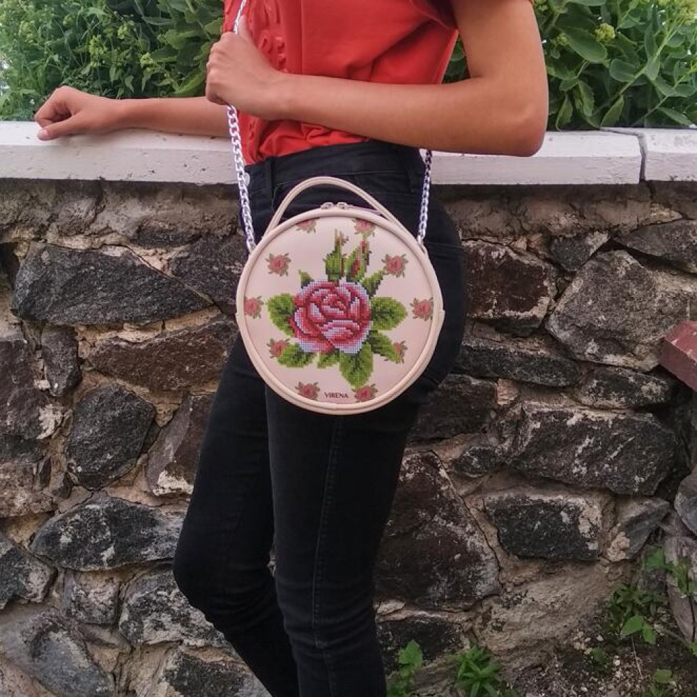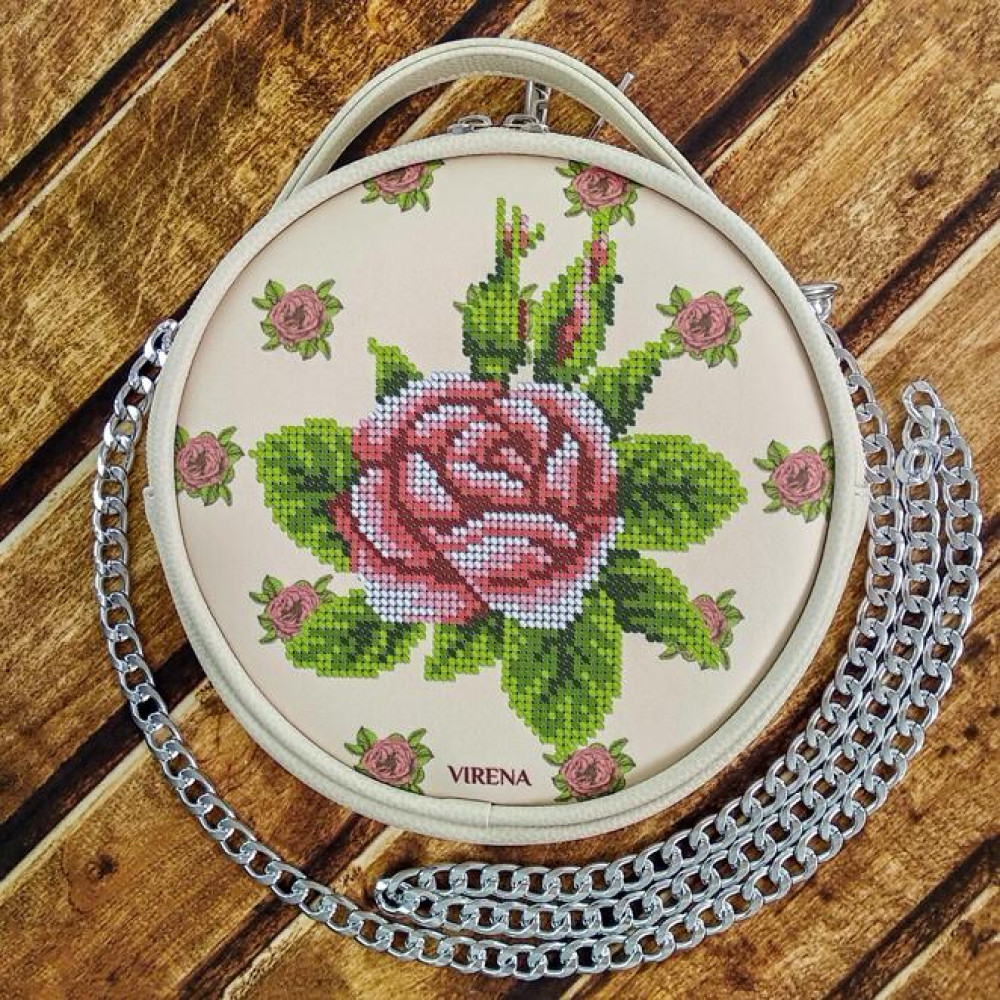 Кругла жіноча сумка для вишивки бісером. Декор нанесений на цупку тканину, яка проклеєна дублерином, друк декору яскравий, чіткий, стійкий до вологи та сонячного світла. Декор вишивається легко та зручно. Сумка повністю зшита та не потребує додаткових операцій по зшиванню. До заготовки для вишивки додаєтся інструкція.