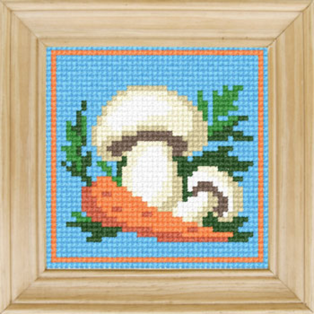 B77 Чарівниця Набір для вишивки друкованим xрестиком - Моркву і гриби 10x10 см (сxема на страміне)