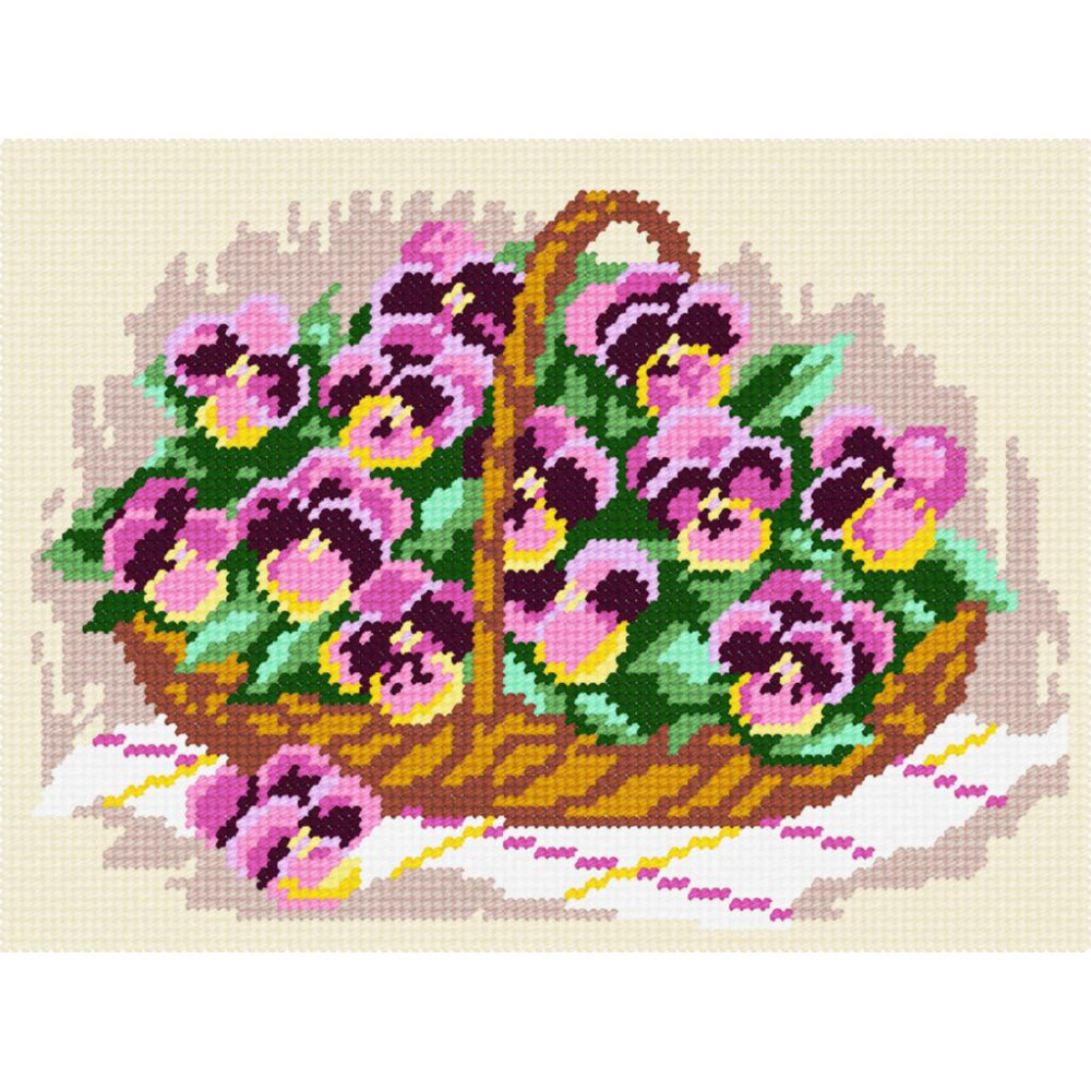 BH20 Чарівниця Набір для вишивки друкованим хрестиком - Фіалки в кошику 18x24 см (схема на канві)
