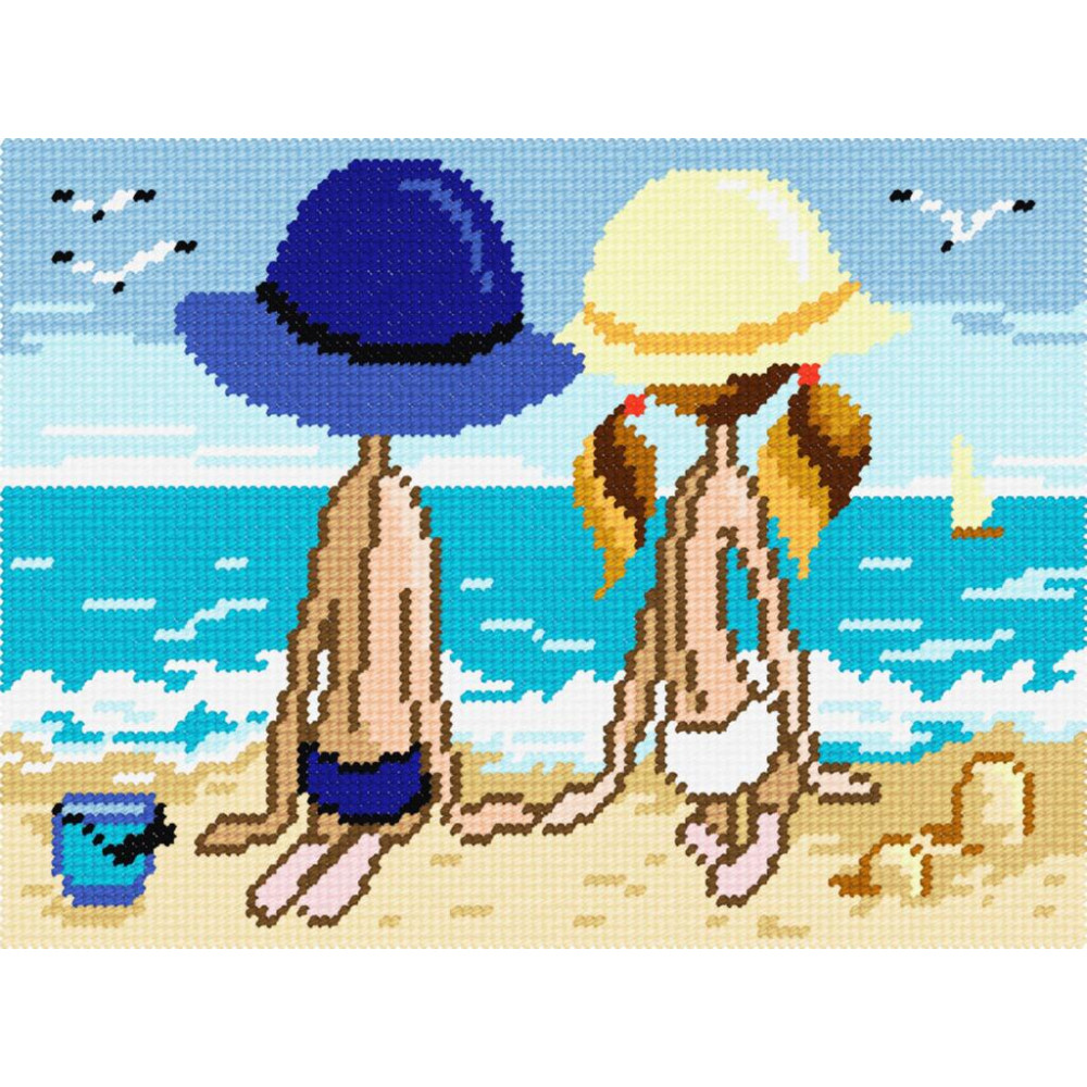 BH48 Чарівниця Набір для вишивки друкованим хрестиком - Діти на морі 18x24 см (схема на канві)