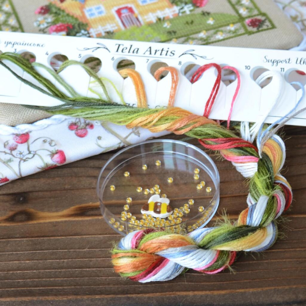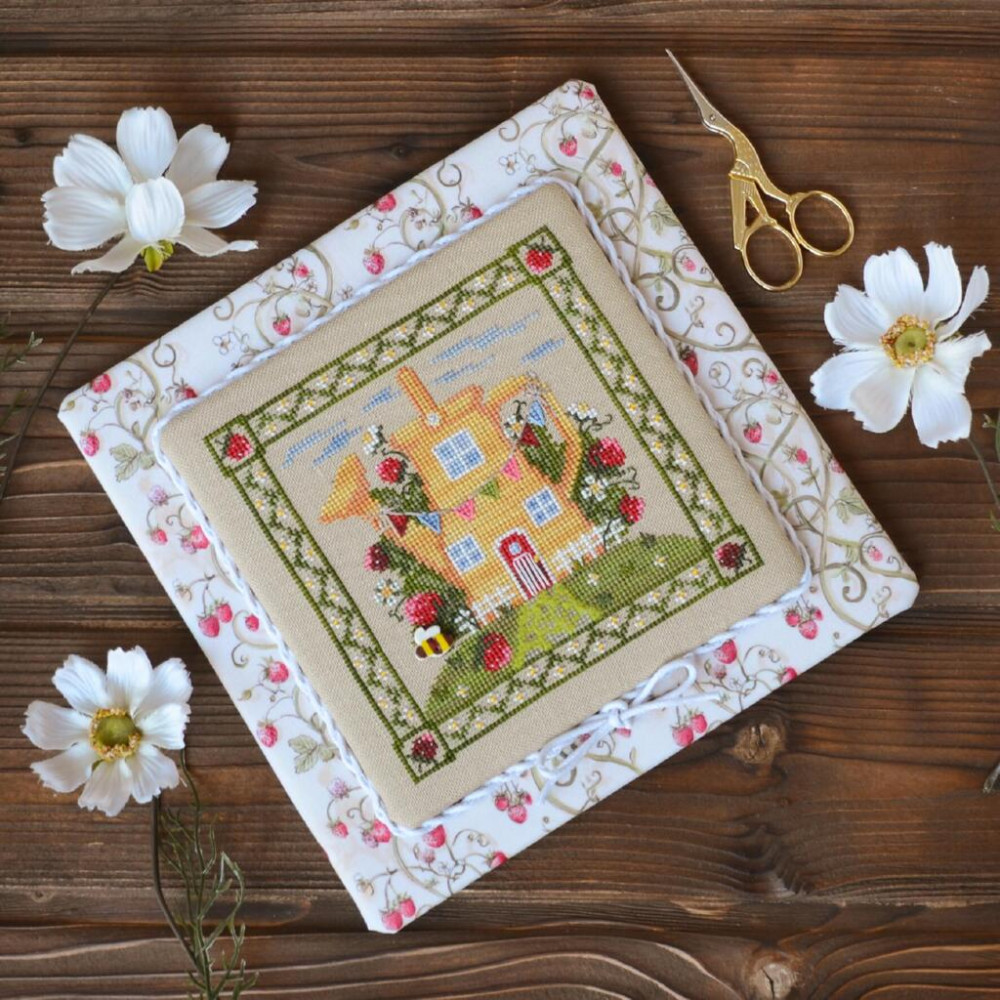 Х-060+F-060 Тела Артіс Набір для вишивки рахунковим хрестиком - Будиночок полуничної феї 13,5х13,5 см, рівномірка 32 ct (набір+тканина для декору)
