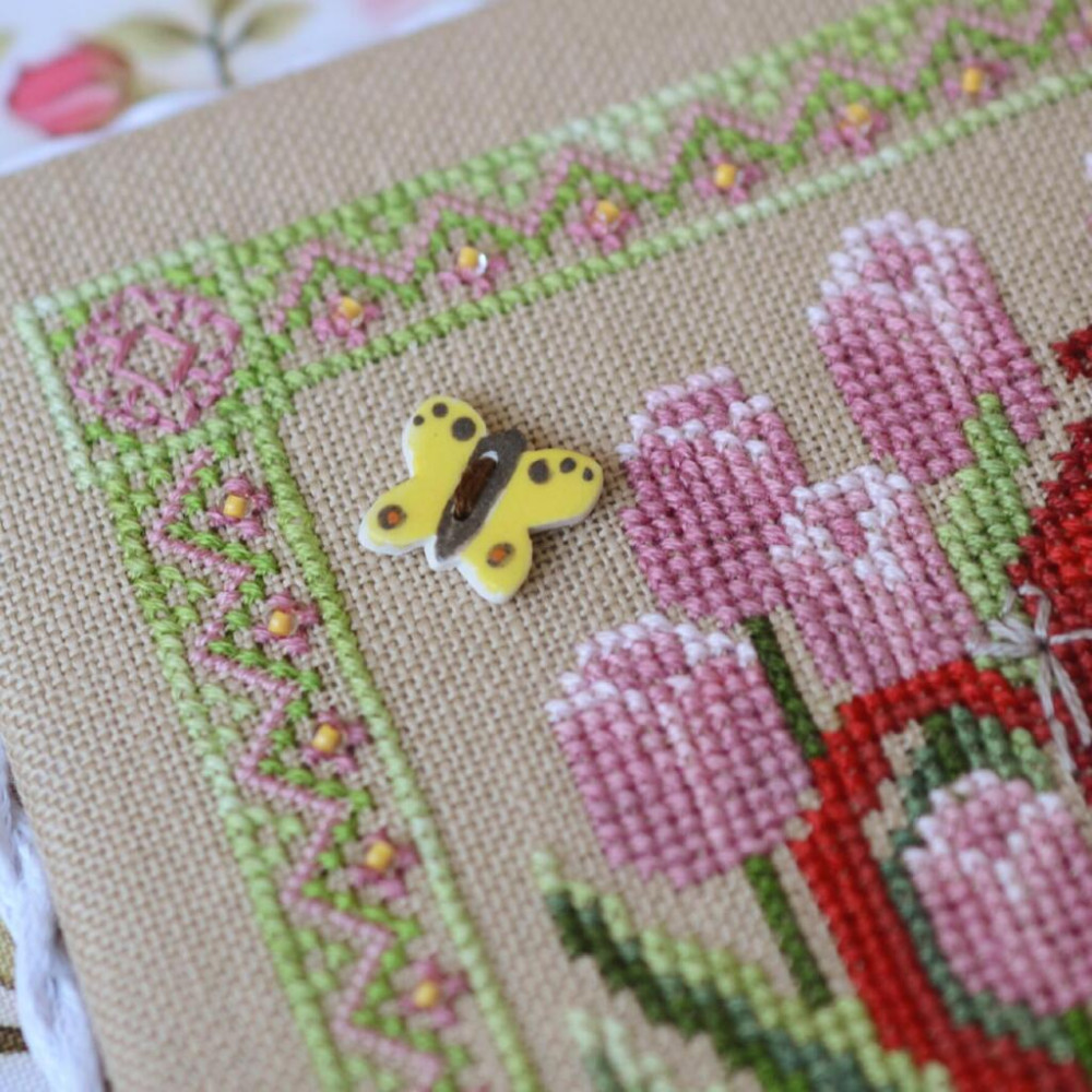 У дизайні, окрім хрестика, присутні також напівхрест і трохи бекстічу, що додає сюжету виразності та деталізації. Готову роботу можна оформити як декоративну мініатюру або милий подарунок ручної роботи.