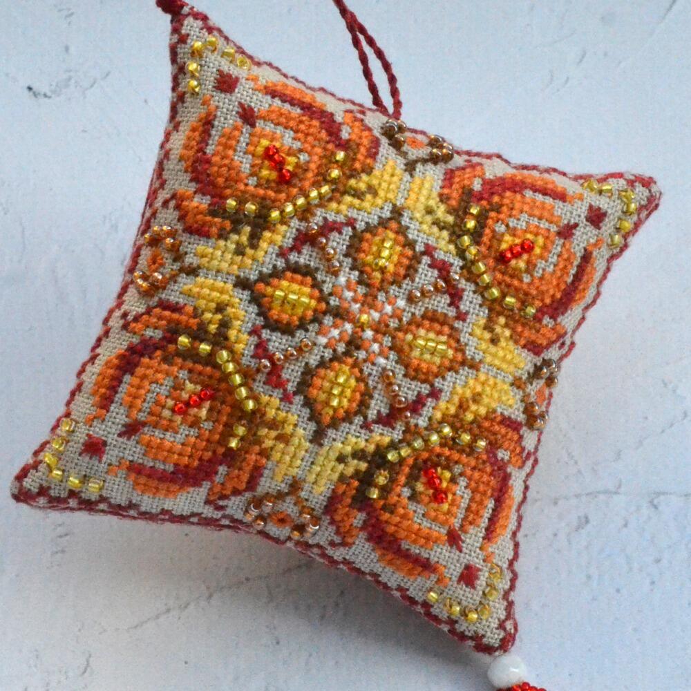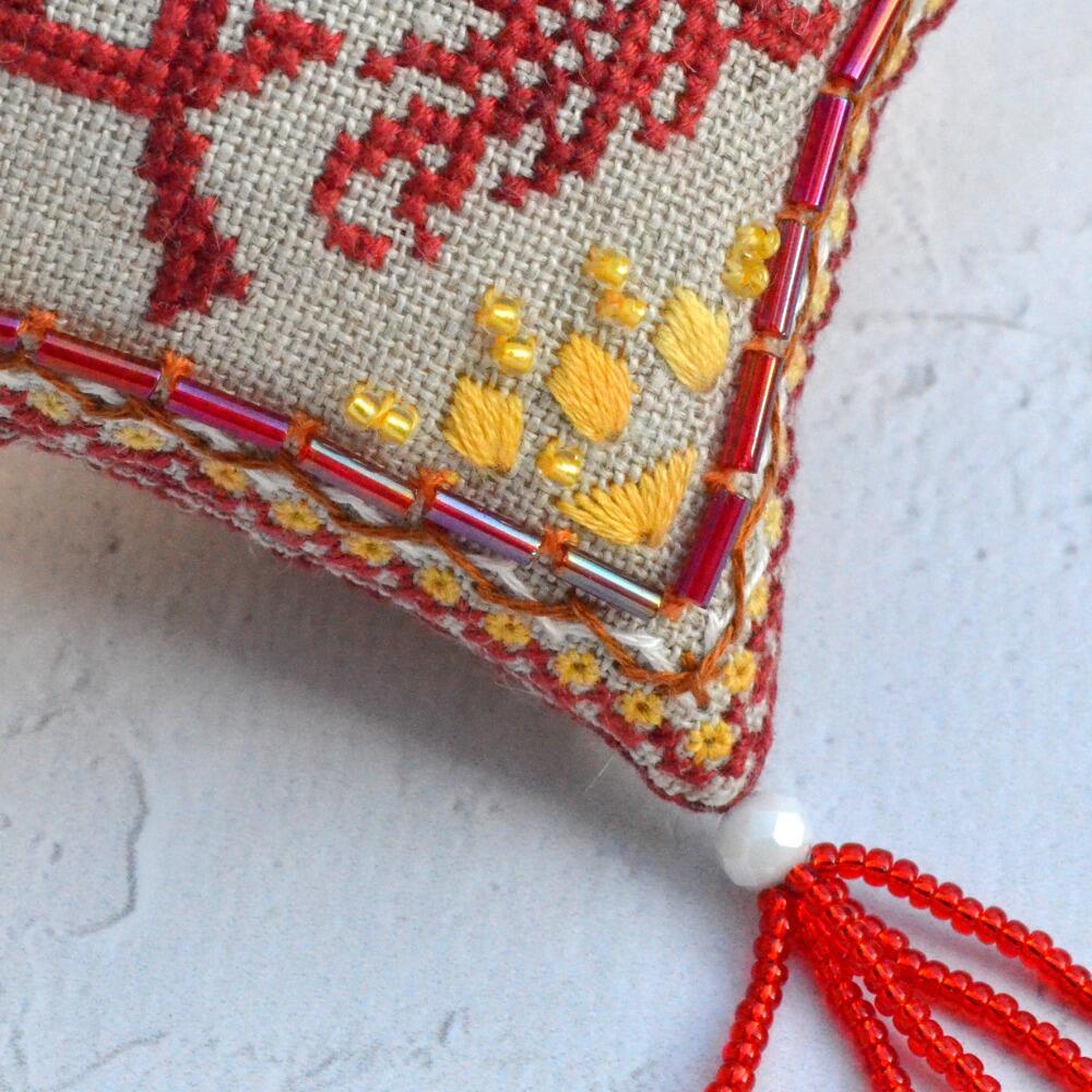 Двостороння подушечка-пінкіп може бути декором оселі, ялинковою прикрасою, або тематичною гольничкою.